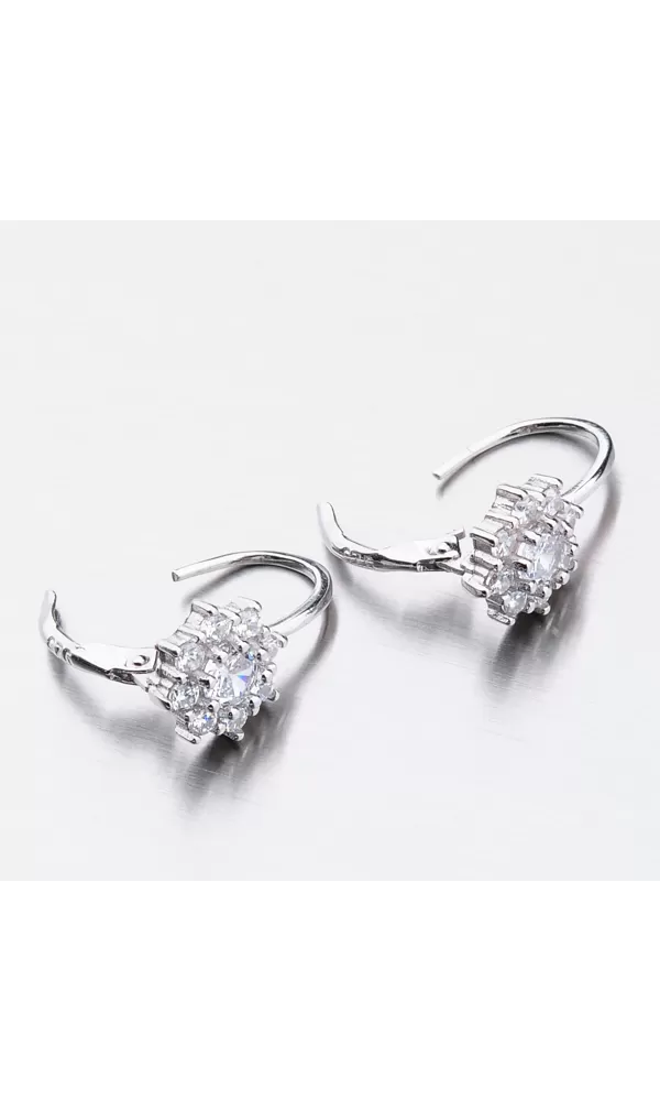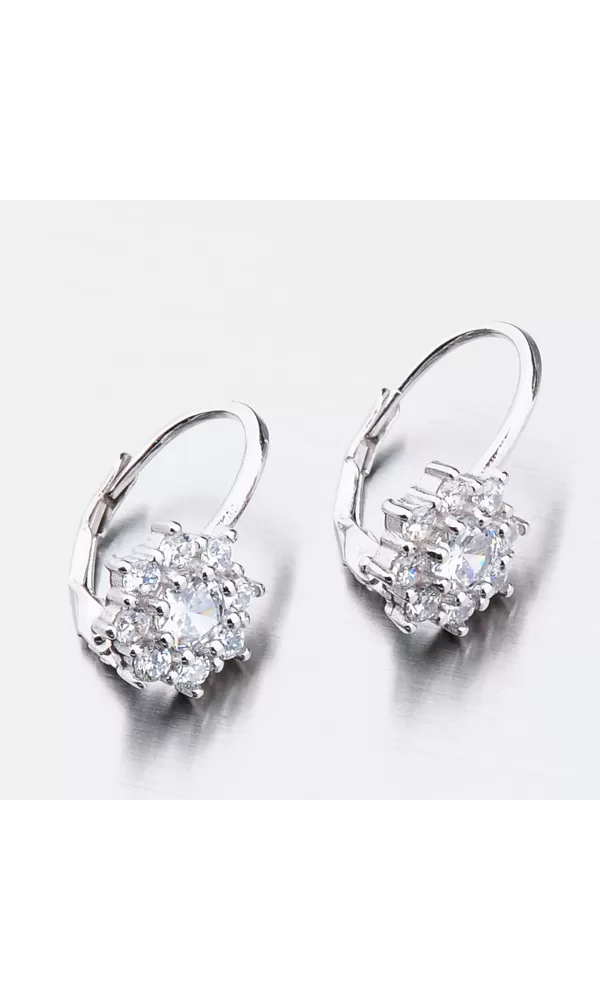 Nádherné náušnice sú tvorené ozdobou, ktorá je zdobená zirkónmi v briliantovom bruse. Stredový zirkón je väčší a obklopujú ho menšie zirkóny. Toto usadenie zirkónov pripomína kvetinu. Zirkóny sú precízne vsadené a uchytené krapnami. Briliantový brús dodáva zirkónom brilanciu pravých diamantov o septembri teda nie je núdza. Tieto náušnice si obľúbite nielen pre ich ligot, ale aj pre ich pohodlnosť. Zapínanie je na klapku.