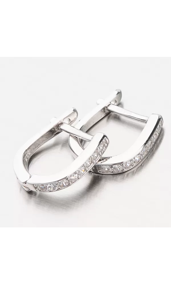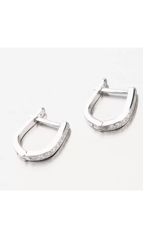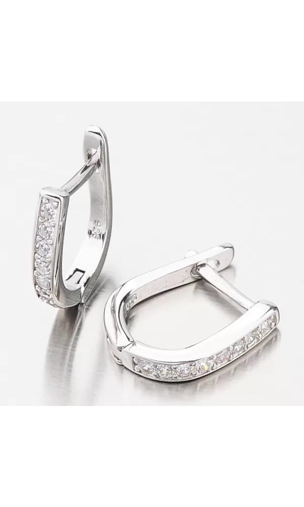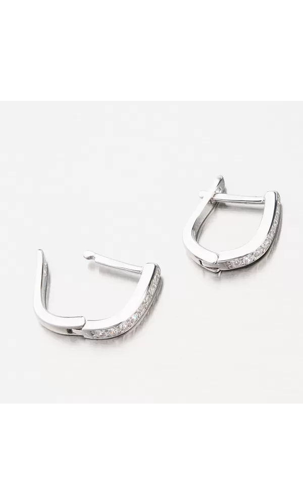 Jemné dámske náušnice sú v jednoduchom dizajne zdobené zirkónmi v briliantovom bruse. Zirkóny sú precízne vsadené do striebra a vďaka briliantovému brusu sa trblietajú ako pravé diamanty. Náušnice sú vhodné na každodenné nosenie a zapínajú sa na pasívny patent.