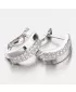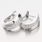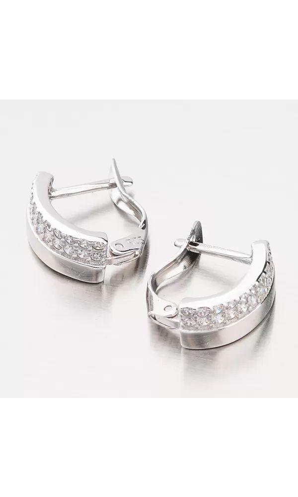 Pohodlné a veľmi atraktívne náušnice vás zaujmú na prvý pohľad tvarom, ktorý pripomína kruh. Krúžky to ale nie sú, Náušnice sú tvorené prednou zaoblenou stranou, ktorá je delené na časť v lesklej povrchovej úprave a časť bohato vysadenú zirkónmi. Zirkóny sú v briliantovom bruse a tento brús im prepožičiava brilanciu pravých diamantov. Náušnice dokonale sadnú na ucho a zapínajú sa na pasívny patent.