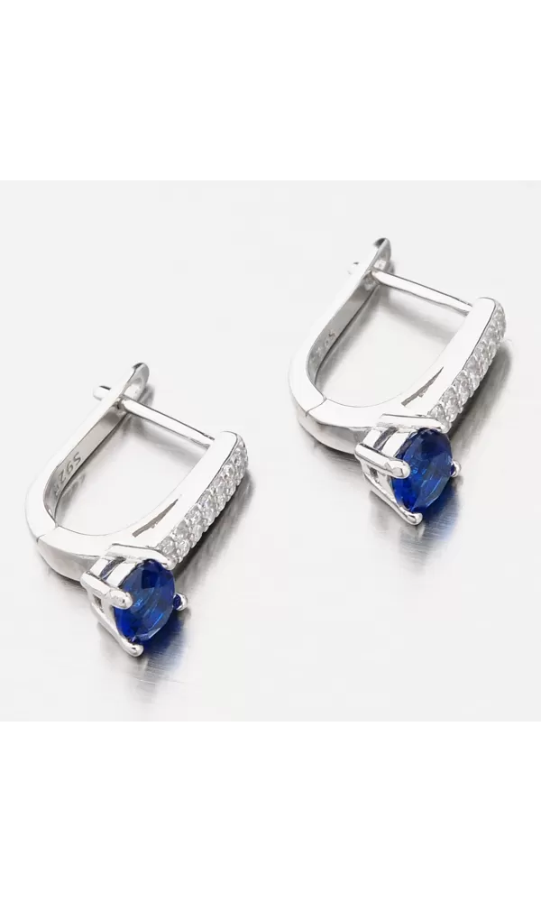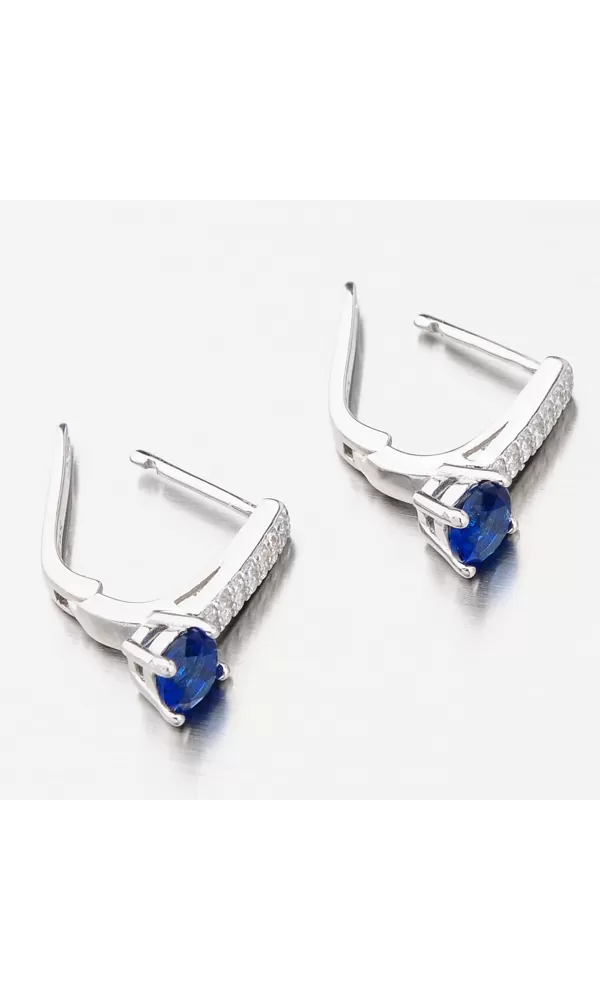Neodolateľný model sa môže pýšiť syntetickým zafírom, ktorý vás zaujme na prvý pohľad. Je usadený v dolnej časti náušnice a drží ho štyri krapne. s modrým kameňom alebo o oblečením. pasívny patent.