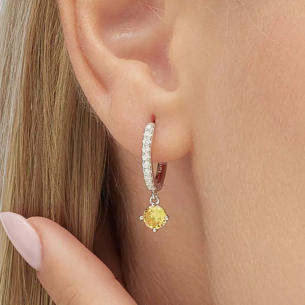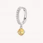 Single náušnice je vyrobená z rhodiovaného striebra rýdzosti 925/1000 v lesklej povrchovej úprave. Ródium je ušľachtilý drahý kov zo skupiny platinových kovov. Rhodiovaním strieborných prsteňov galvanickým nanášaním tohto drahého kovu sa stáva povrch šperku tvrdší, stálejší a odolnejší voči vonkajším vplyvom ako je mechanický oter, poškriabanie, nabiehanie striebra, ľudský pot, kozmetické prípravky a ďalšie. Ródium je antialergické. Visiace náušnice zdobia žiarivé zirkóny precízne brúsené tak, aby sa rozžiarili každým Vašim pohybom.