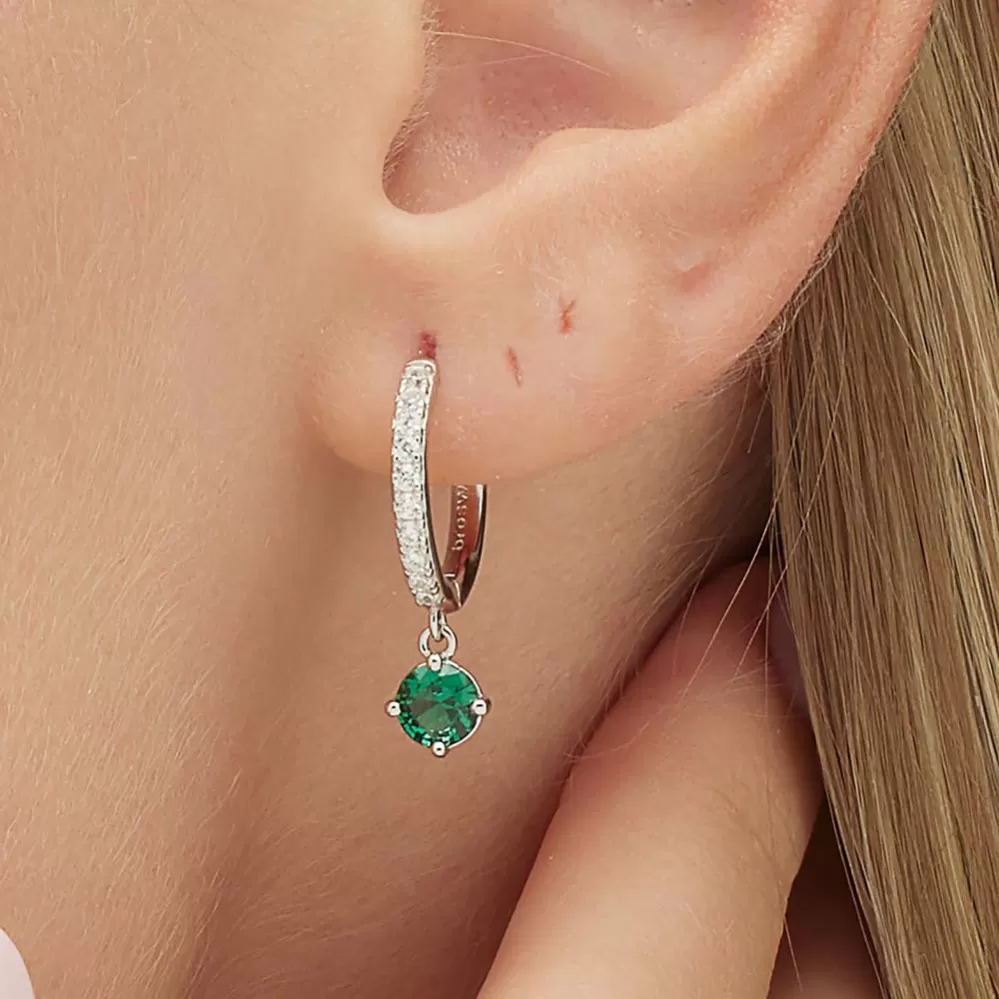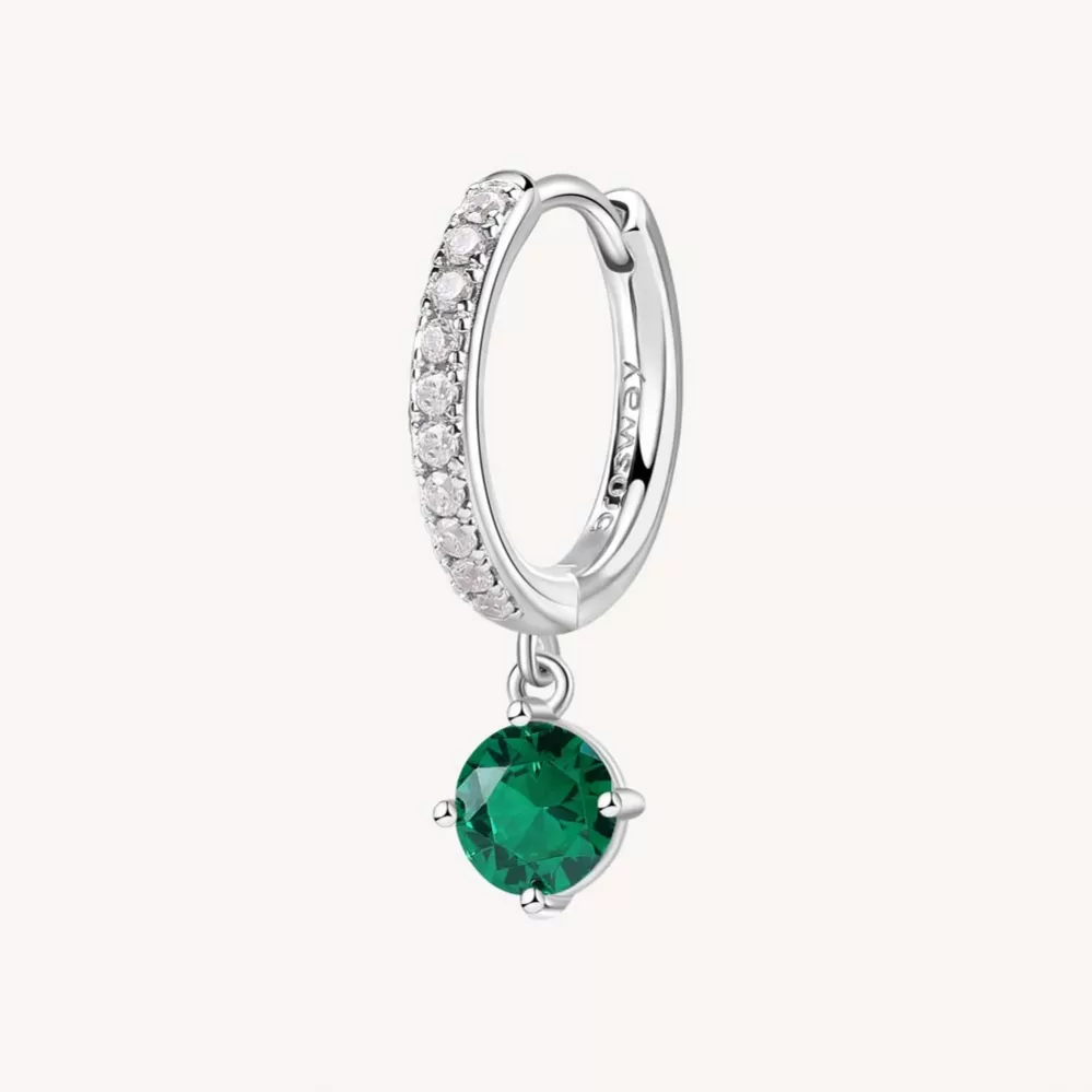 Single náušnice je vyrobená z rhodiovaného striebra rýdzosti 925/1000 v lesklej povrchovej úprave. Ródium je ušľachtilý drahý kov zo skupiny platinových kovov. Rhodiovaním strieborných prsteňov galvanickým nanášaním tohto drahého kovu sa stáva povrch šperku tvrdší, stálejší a odolnejší voči vonkajším vplyvom ako je mechanický oter, poškriabanie, nabiehanie striebra, ľudský pot, kozmetické prípravky a ďalšie. Ródium je antialergické. Visiace náušnice zdobia žiarivé zirkóny precízne brúsené tak, aby sa rozžiarili každým Vašim pohybom.