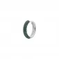 Single náušnice je vyrobená z rhodiovaného striebra rýdzosti 925/1000 v lesklej povrchovej úprave. Ródium je ušľachtilý drahý kov zo skupiny platinových kovov. Rhodiovaním strieborných prsteňov galvanickým nanášaním tohto drahého kovu sa stáva povrch šperku tvrdší, stálejší a odolnejší voči vonkajším vplyvom ako je mechanický oter, poškriabanie, nabiehanie striebra, ľudský pot, kozmetické prípravky a ďalšie. Ródium je antialergické. Náušnice v tvare kruhu je vysadená kubickými zirkónmi.
