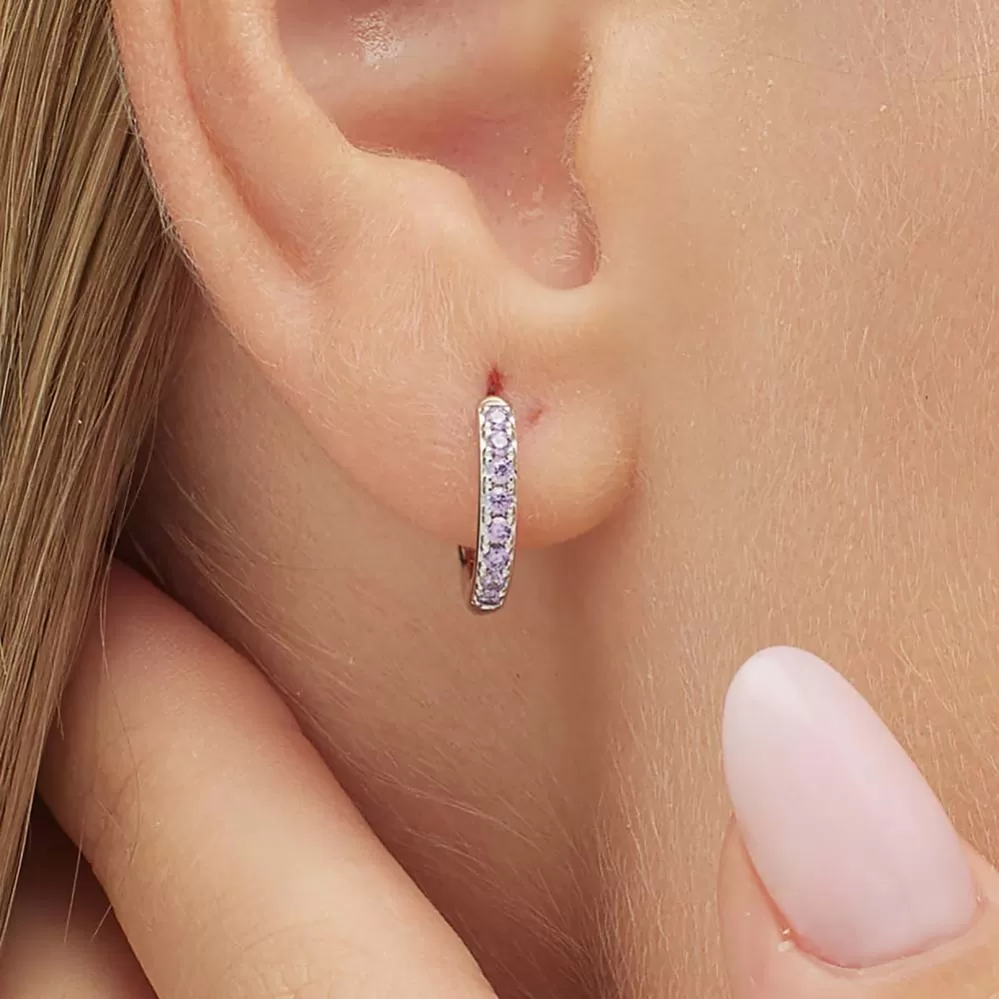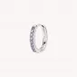 Single náušnice je vyrobená z rhodiovaného striebra rýdzosti 925/1000 v lesklej povrchovej úprave. Ródium je ušľachtilý drahý kov zo skupiny platinových kovov. Rhodiovaním strieborných prsteňov galvanickým nanášaním tohto drahého kovu sa stáva povrch šperku tvrdší, stálejší a odolnejší voči vonkajším vplyvom ako je mechanický oter, poškriabanie, nabiehanie striebra, ľudský pot, kozmetické prípravky a ďalšie. Ródium je antialergické. Náušnice v tvare kruhu je vysadená kubickými zirkónmi.