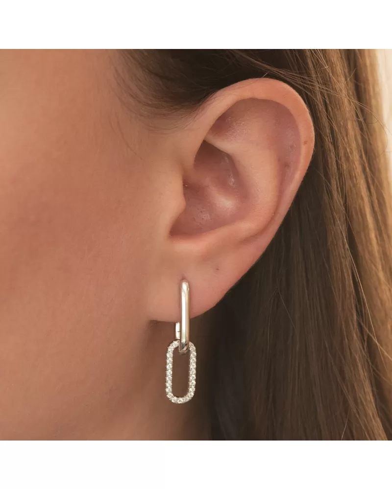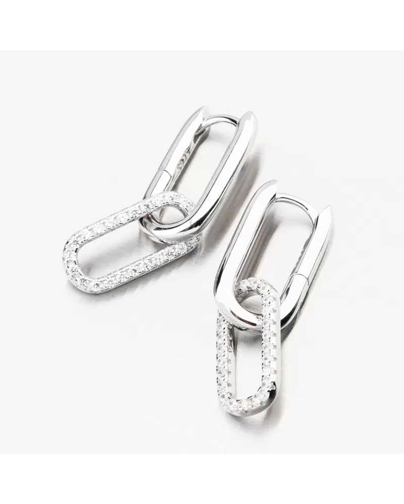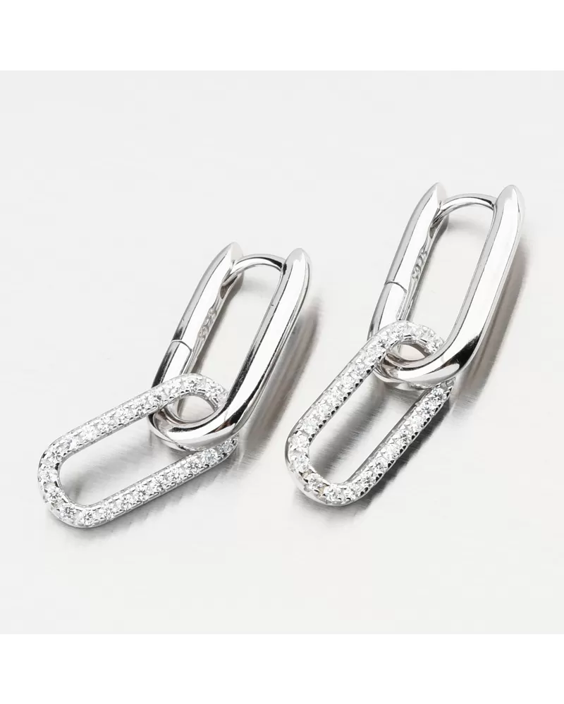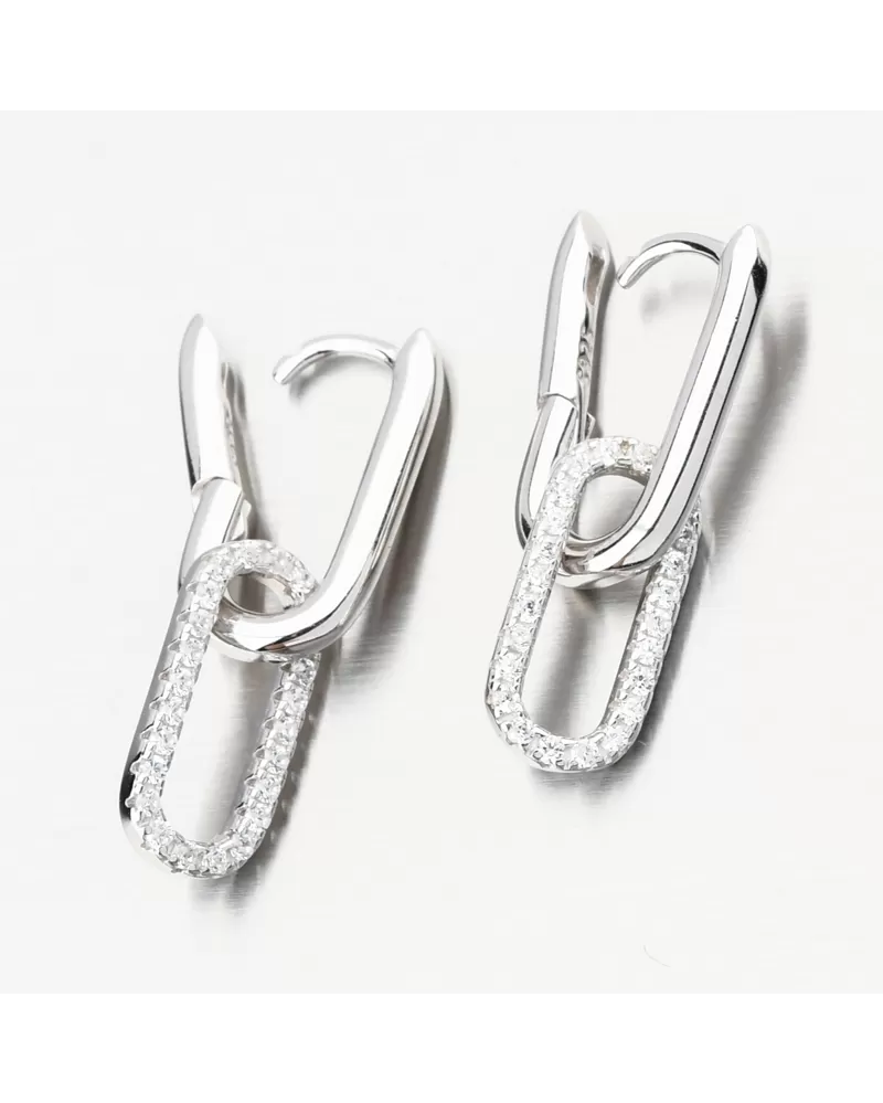 Strieborné náušnice v tvare písmena U zdobené žiarivými zirkónmi, ktoré visia na oválnej dekorácii v spodnej časti náušníc. Zirkóny sú brilantným strihom, ktorý poskytuje maximálnu brilanciu leštenej stránky, dokonale odráža svetlo a neuveriteľne svieti zo všetkých pohľadov. Náušnice majú krásny žiarivý vzhľad a pridávajú eleganciu vo všetkých smeroch.