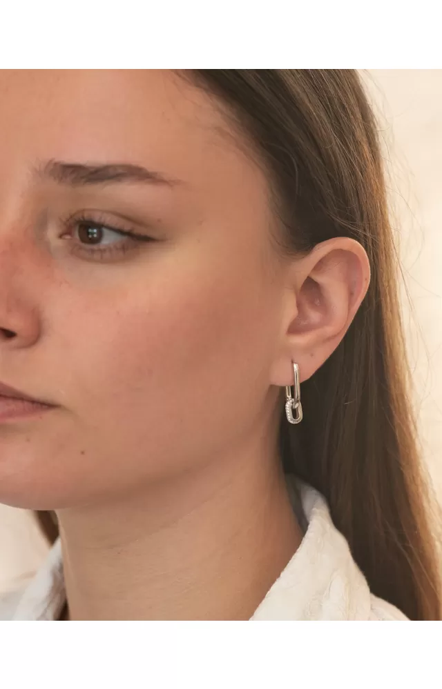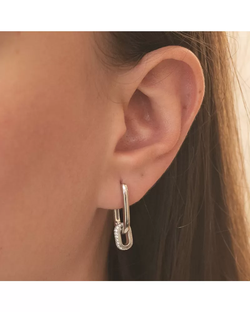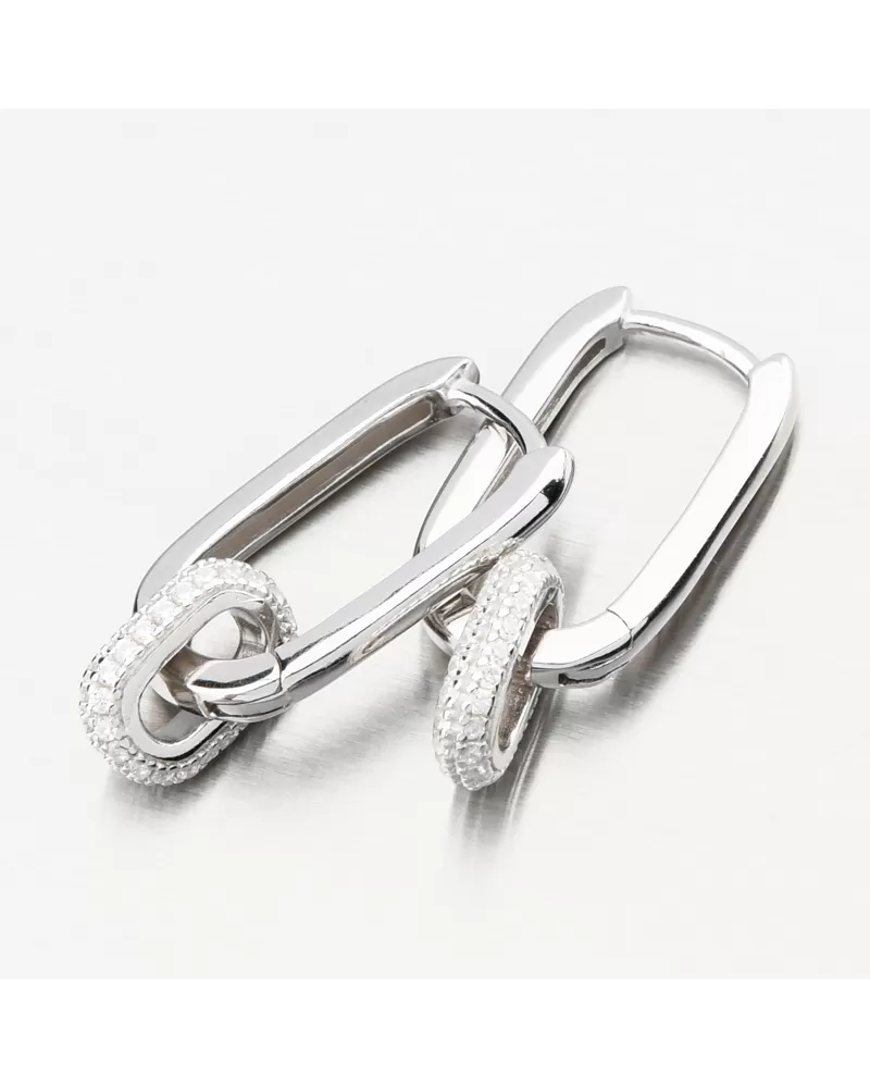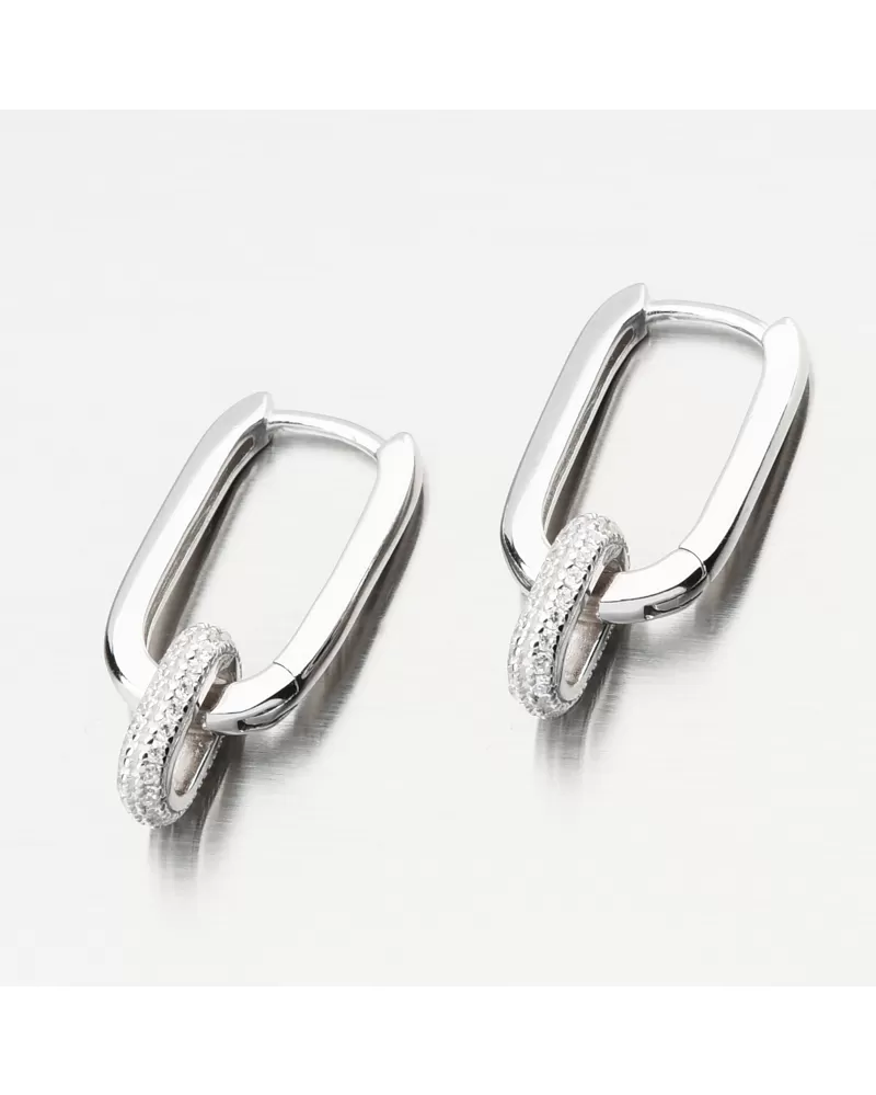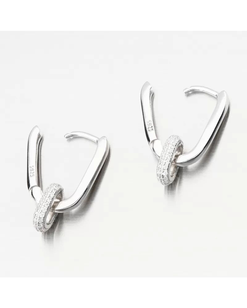 Strieborné náušnice v tvare písmena U zdobené sálavými zirkónmi, ktoré visia na oválnej dekorácii v spodnej časti náušníc. Zirkóny sú brilantným strihom, ktorý poskytuje maximálnu brilanciu leštenej aspektu, dokonale odráža svetlo a neuveriteľne svieti zo všetkých pohľadov. Náušnice majú krásny žiarivý vzhľad a pridávajú eleganciu vo všetkých smeroch.