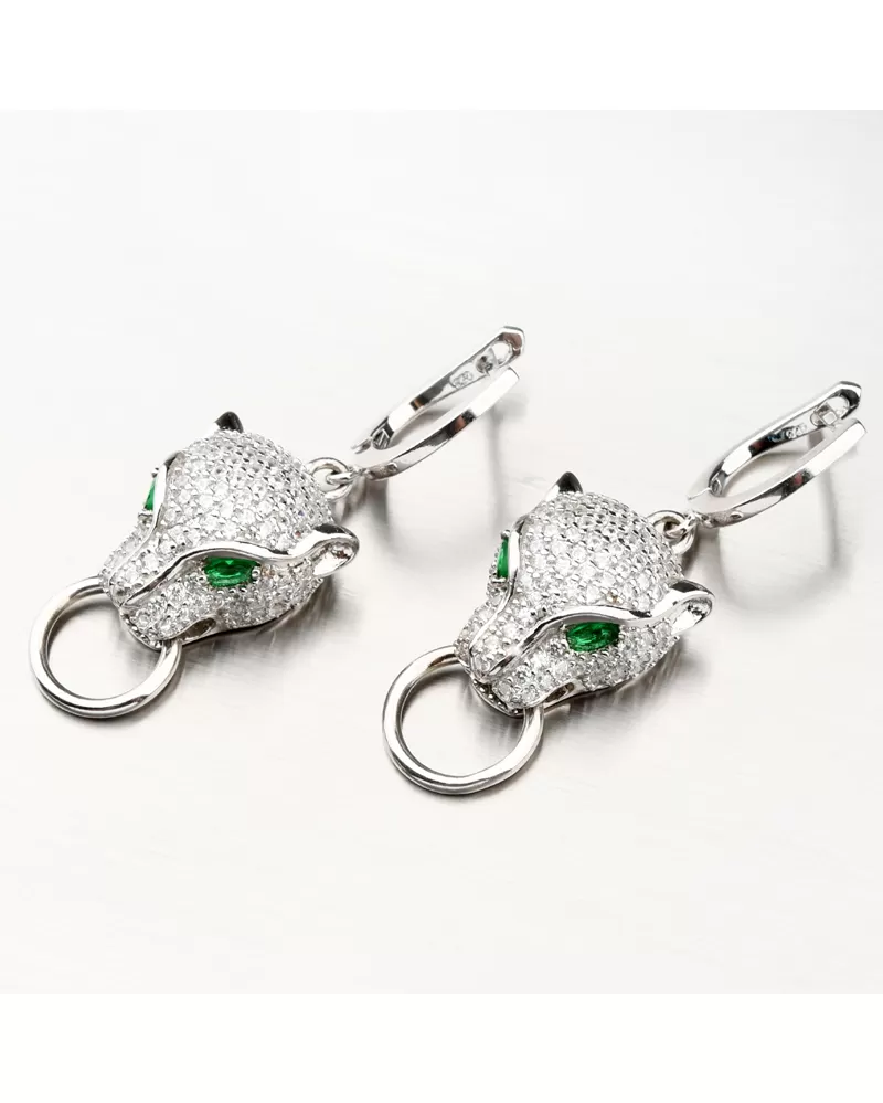 nezameniteľné náušnice v tvare tigrovej hlavy, ktorá sa vyrieši priestorovo v 3D rozmeroch. Symbol tigra zobrazuje silu, odvahu a energiu. Hlava Tiger je vybavená zirkónmi a hlavným dominantným sú zelené oči. Úžasné náušnice sofistikované do najmenších detailov. Ich trblietky sú podčiarknuté zirkónmi nakrájanými na brilantný strih, ktorý poskytuje maximálnu brilanciu leštenej aspektu, dokonale odráža svetlo a neuveriteľne svieti zo všetkých pohľadov. Zirkóny sú umiestnené v náušniciach s maximálnou starostlivosťou, a preto sa nemusia starať o ich vypadnutie.