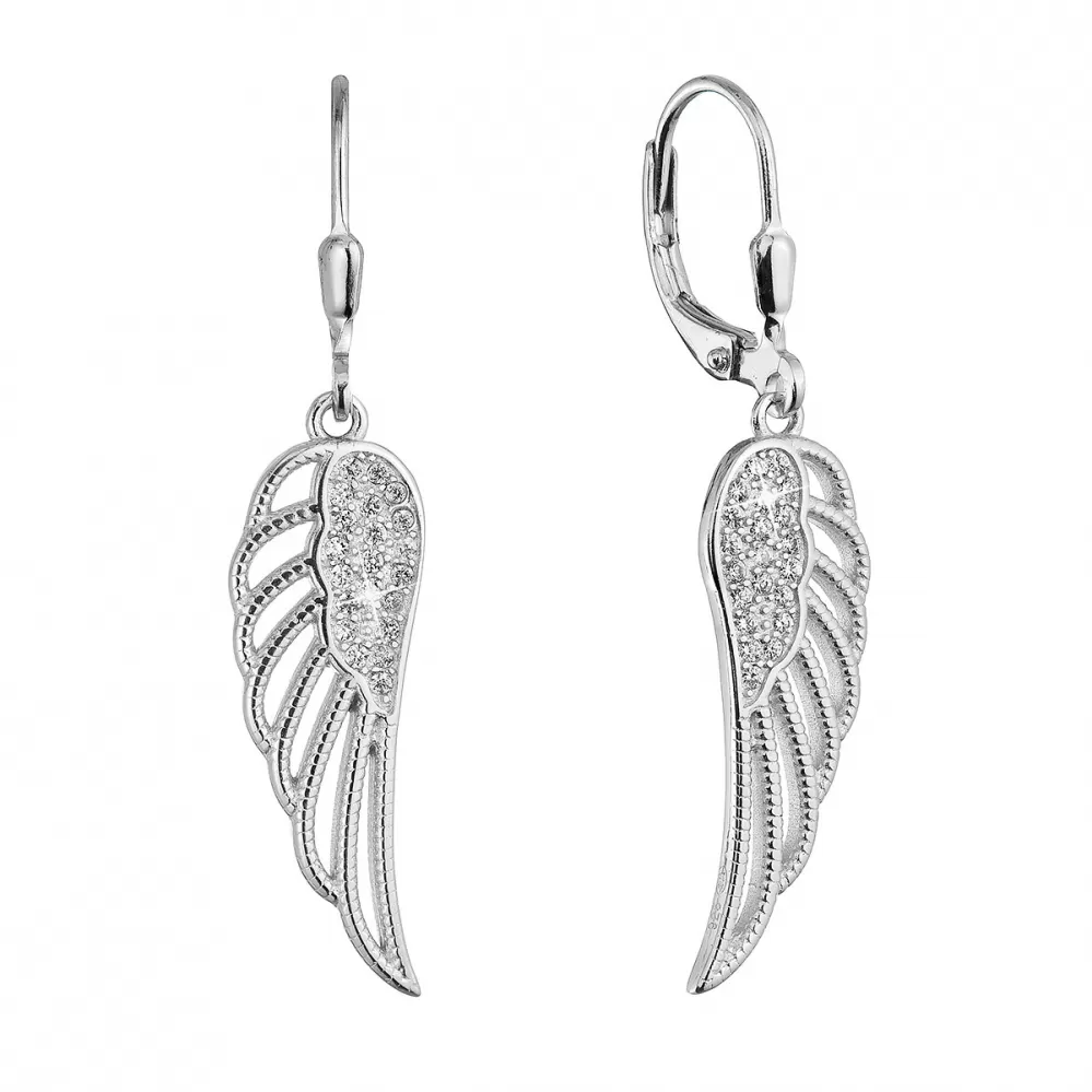 Strieborné dlhé náušnice anjelské krídla so zirkónmi 11544.1