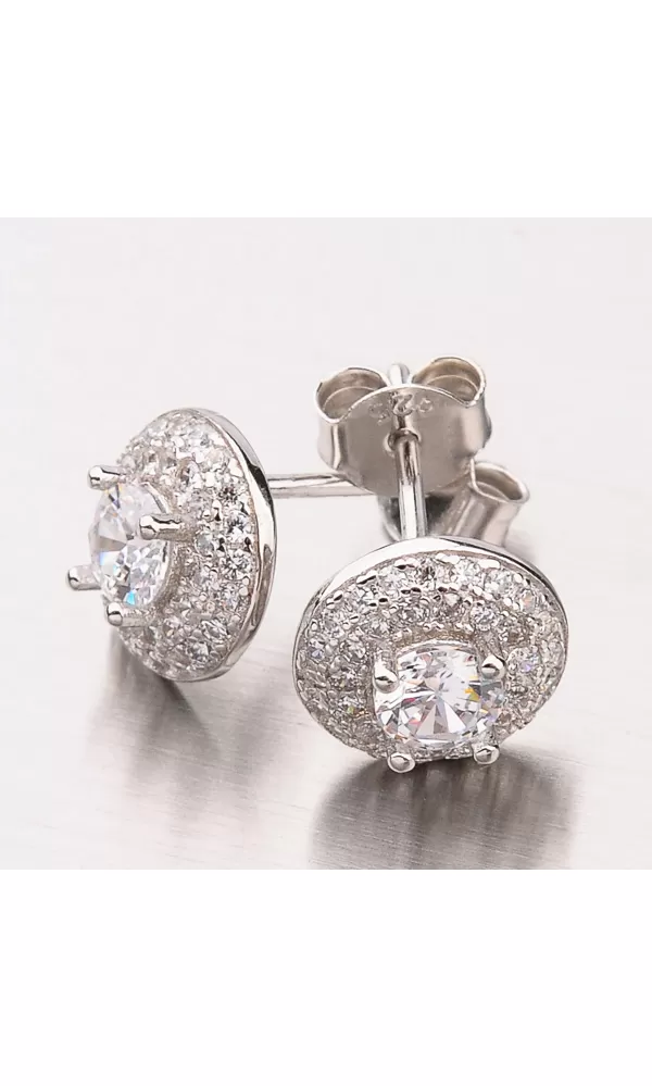 Náušnice majú v strede použitý veľký zirkón v briliantovom bruse a okolo neho sú vsadené menšie zirkóny. Náušnice sú žiarivé a vyzerajú luxusne. Zapínajú sa na puzete.