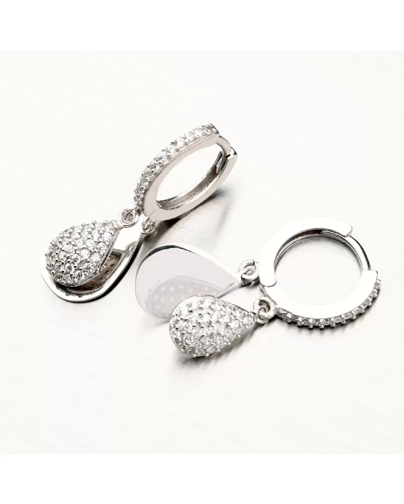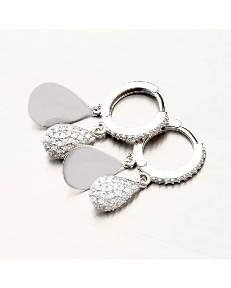 Nestarnúce kruhy s príveskami. Jemné strieborné kruhy dekorované zirkónmi na prednej strane náušníc a potom sú zakončené dvoma vysacími slzičkami, kde jedna je osadená zirkónmi a druhá je vo vysokom lesku. Zirkóny sú vybrúsené do briliantového brusu, ktorý dodáva dokonalý lesk kameňom. Zároveň majú fantastické zapínanie, ktoré sa len jednoducho zaklapne a drží.