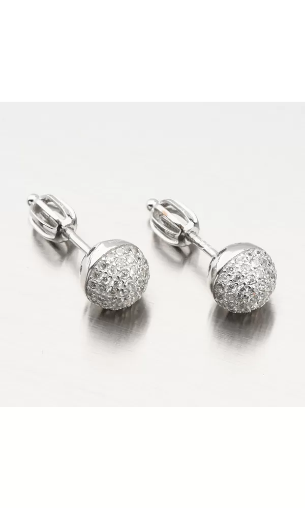 Tieto náušnice, vhodné do práce aj do spoločnosti, si zamilujú ženy s obľubou decentnej elegancie. Ozdoba je vo forme guličky, ktorá je z prednej strany kompletne osadená drobnými čírymi zirkónmi. Náušnice sú opatrené zapínaním na skrutku, preto máte istotu, že náušnice nestratíte a navyše sú oveľa príjemnejšie na nosenie oproti zapínaniu na puzetu. Kôstky budú ideálnou voľbou pre ženy s krátkymi vlasmi. Dlhovlasé ženy majú neobmedzené možnosti a budú sa hodiť, ako kôstky, tak aj visiace náušnice.