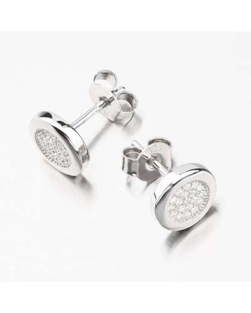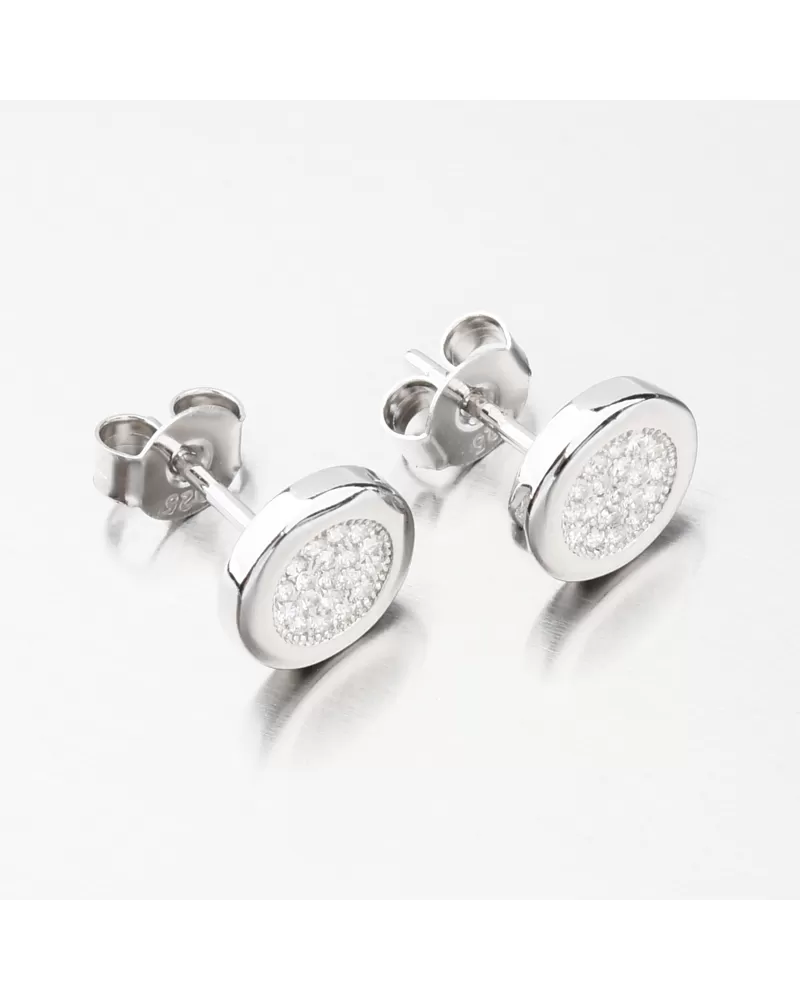 Jemné elegantné náušnice, ktoré vynikajú moderným dizajnom a osadením trblietavými zirkónmi. Uprostred náušníc je vsadených veľa menších zirkónov dookola. Zirkóny sú briliantového brusu, ktorý zaisťuje maximálnu brilanciu vybrúsených facet, dokonale odráža svetlo a neuveriteľne žiari z každého uhla pohľadu.