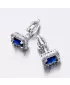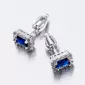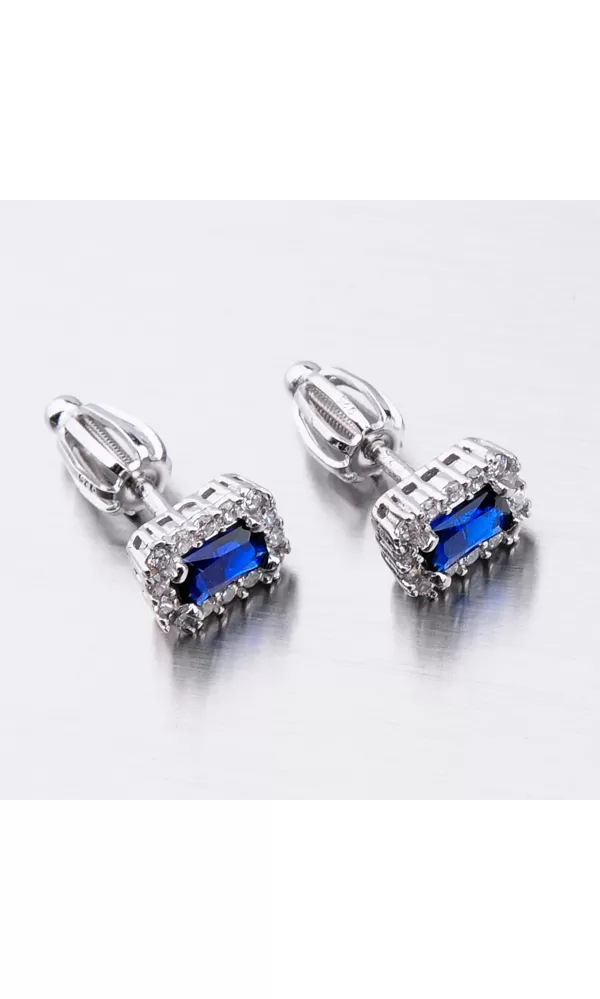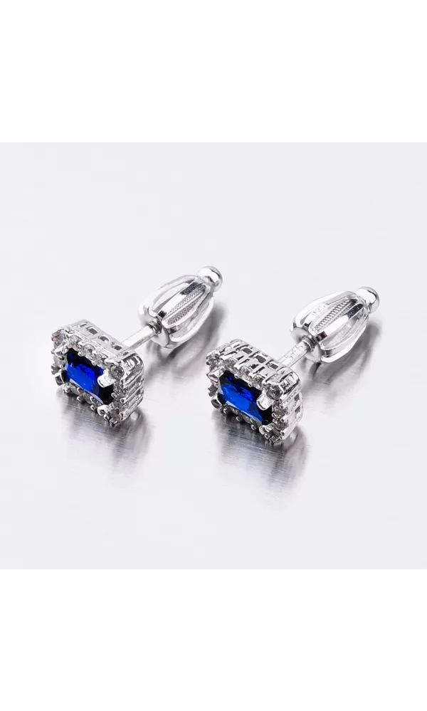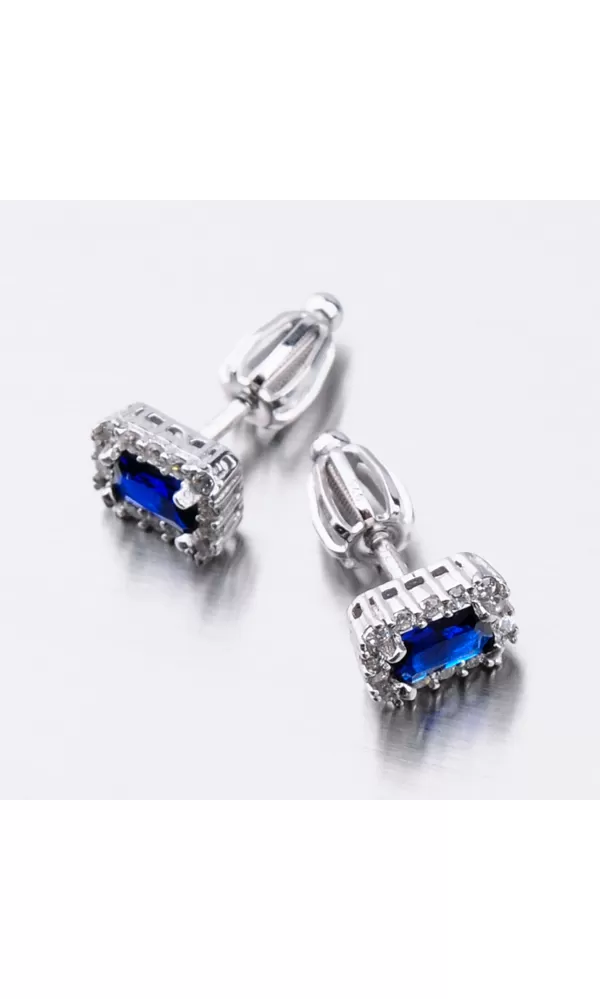 Náušnice sú v hranatom tvare zdobené stredovým zirkónom v modrej farbe, ktorý je brúsený do tvaru obdĺžnika. Okolo tohto zirkónu sú vsadené menšie zirkóny v briliantovom bruse. Bola by škoda stratiť tento šperk, preto je zvolené zapínanie na skrutku, ktoré je bezpečné.