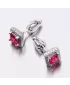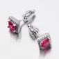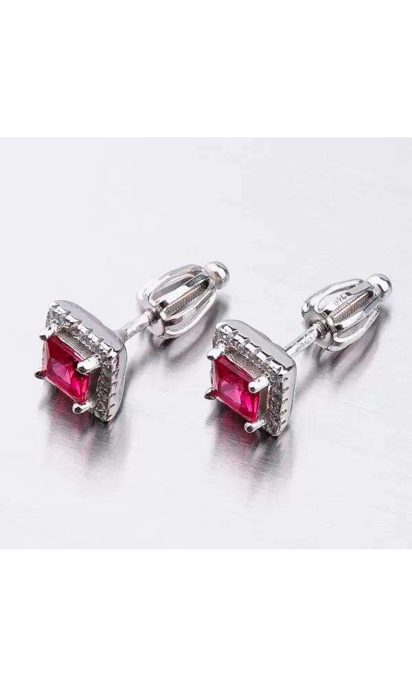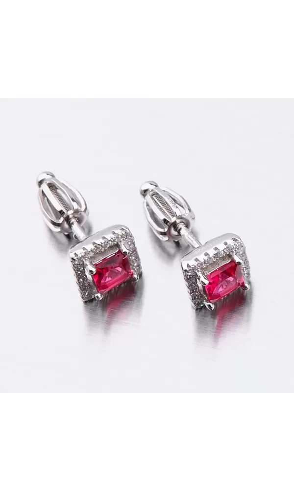 Náušnice sú v hranatom tvare zdobené stredovým zirkónom v červenej farbe, ktorý je brúsený do tvaru princes. Okolo tohto zirkónu sú vsadené menšie zirkóny v briliantovom bruse. Bola by škoda stratiť tento šperk preto je zvolené zapínanie na skrutku, ktoré je bezpečné.