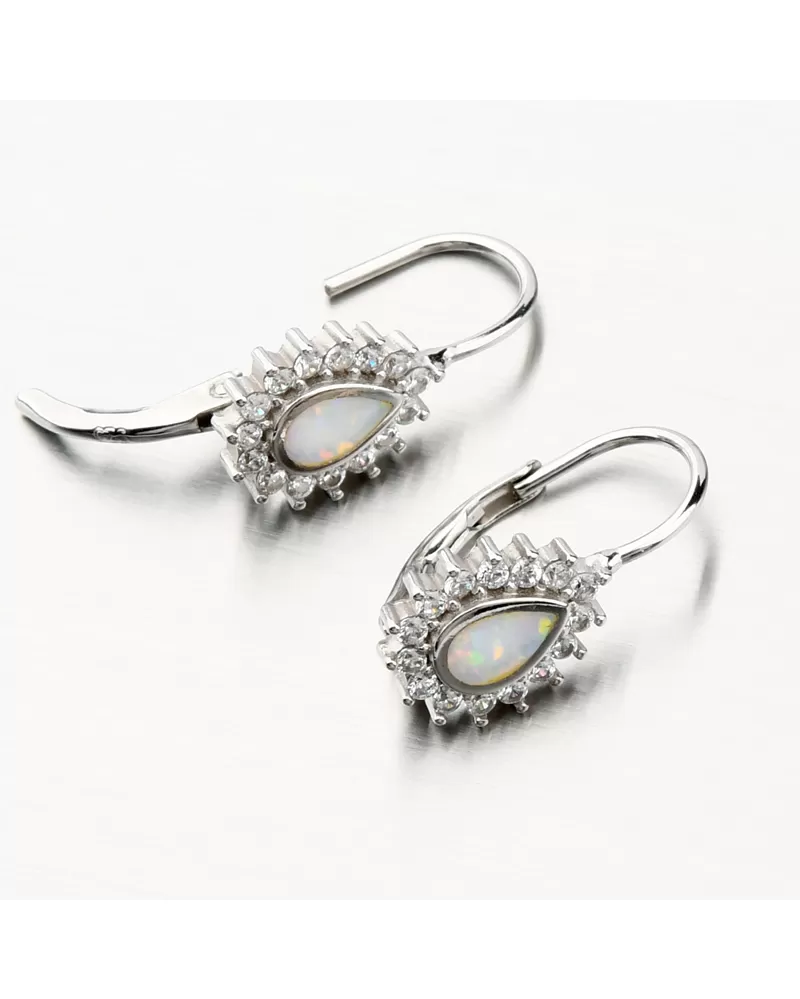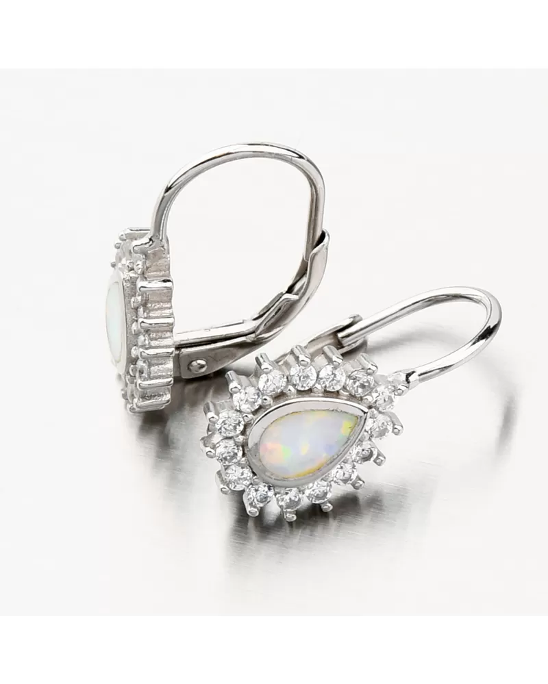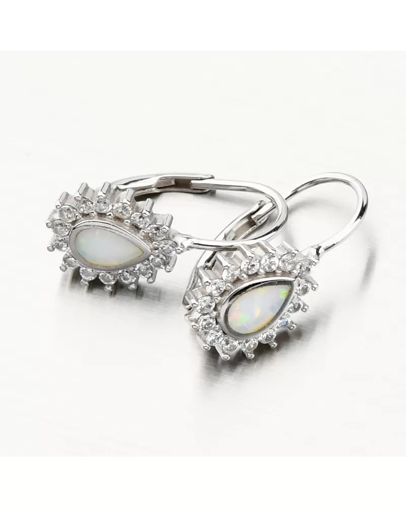 Tieto náušnice Vás oslnia na prvý pohľad, vyniká v nich biely opál, ktorý je preslávený svojimi žiarivými odleskami a krásnou dúhovou farbou, ktorá dokonale vyladí Váš outfit. Opál je syntetický a je tvaru slzy. Náušnice sú aj napriek svojej veľkosti stále ľahké a budú maximálne pohodlné aj na celodenné nosenie. Sú navyše ozdobené trblietavými zirkónmi po celom obvode. Zirkóny sú brúsené do briliantového brusu, ktorý prepožičiava kameňom brilanciu pravých diamantov. Dizajn náušníc je elegantný a zažiarite s nimi pri všetkých príležitostiach.