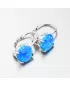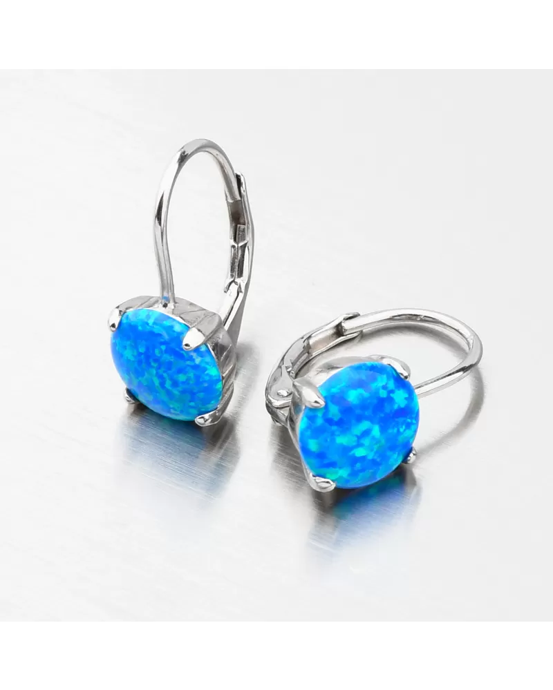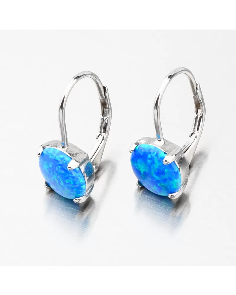 Šperky s opálmi zaujmú okolie na prvý pohľad. Modrý opál je preslávený svojimi žiarivými odleskami a krásnou farbou, ktorá dokonale vyladí Váš outfit. Opál je syntetický a je okrúhleho tvaru upevnený pomocou štyroch krapien. Náušnice sú aj napriek svojej veľkosti stále ľahké a budú maximálne pohodlné aj na celodenné nosenie.