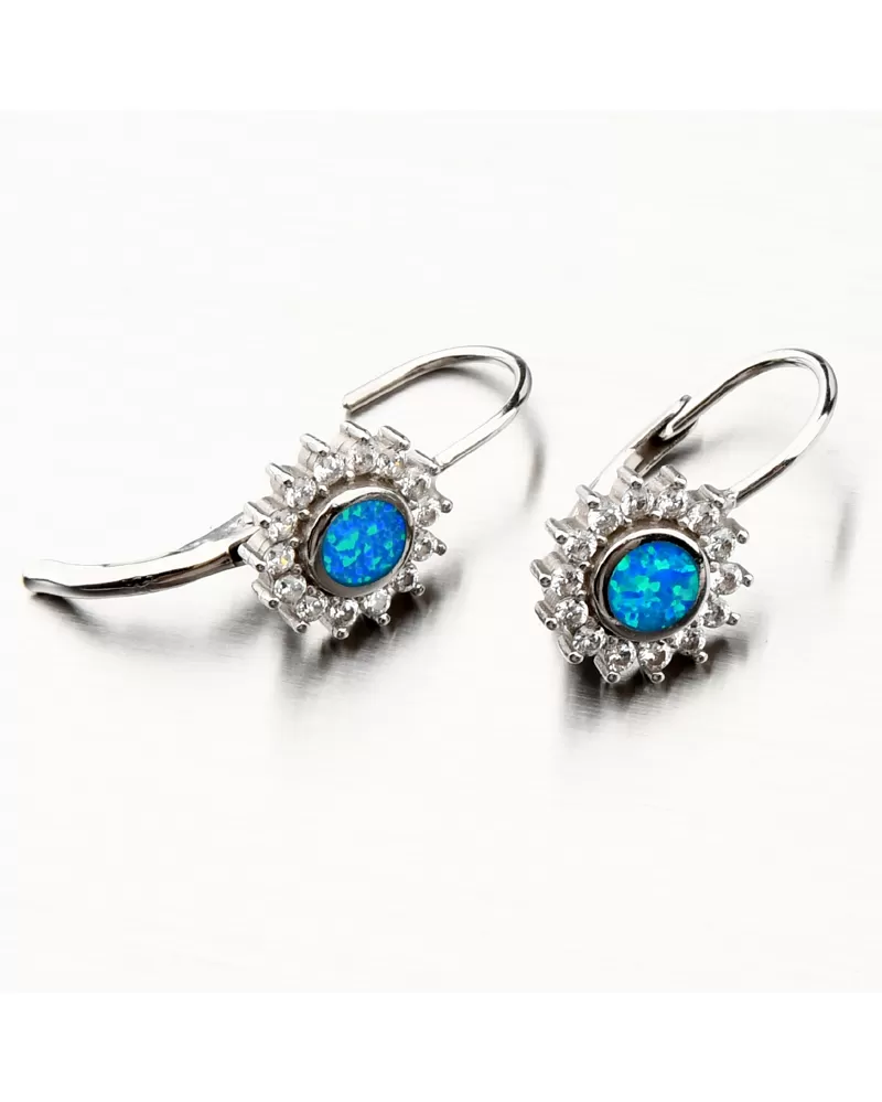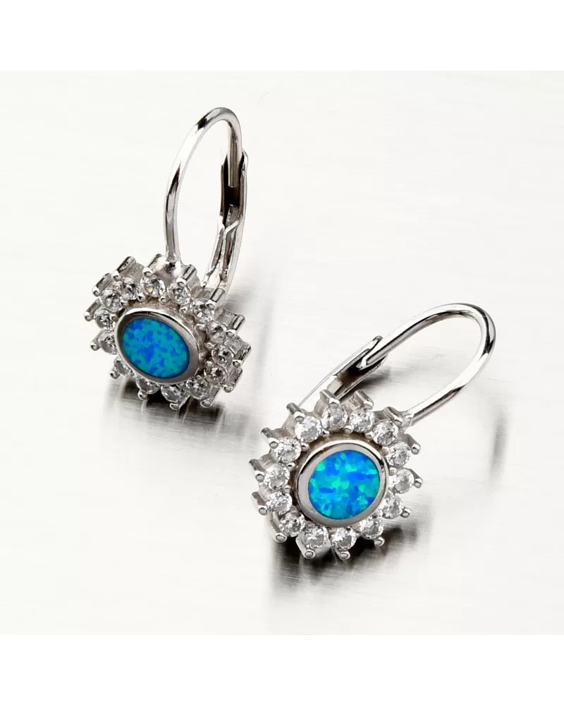 Šperky s opálmi zaujmú okolie na prvý pohľad. Modrý opál je preslávený svojimi žiarivými odleskami a krásnou farbou, ktorá dokonale vyladí Váš outfit. na celodenné nosenie. Sú navyše ozdobené trblietavými zirkónmi po celom obvode. Zirkóny sú brúsené do briliantového brusu, ktorý prepožičiava kameňom brilanciu pravých diamantov. Design náušníc je elegantný a zažiarite s nimi pri všetkých príležitostiach.