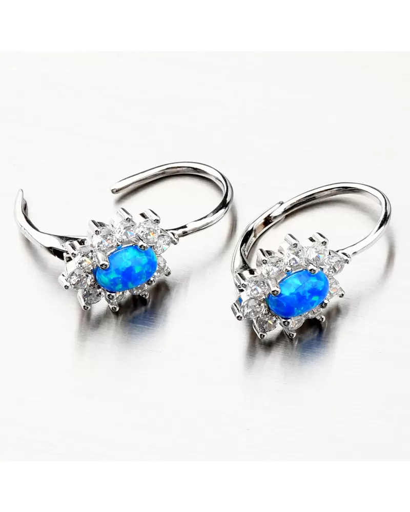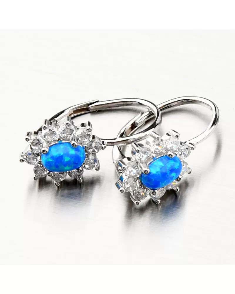 Tieto náušnice Vás oslnia na prvý pohľad, vyniká v nich modrý opál, ktorý je preslávený svojimi žiarivými odleskami a krásnou farbou, ktorá dokonale vyladí Váš outfit. Opál je syntetický a je oválneho tvaru. Náušnice sú aj napriek svojej veľkosti stále ľahké a budú maximálne pohodlné aj na celodenné nosenie. Sú navyše ozdobené trblietavými zirkónmi po celom obvode. Zirkóny sú brúsené do briliantového brusu, ktorý prepožičiava kameňom brilanciu pravých diamantov. Dizajn náušníc je elegantný a zažiarite s nimi pri všetkých príležitostiach.
