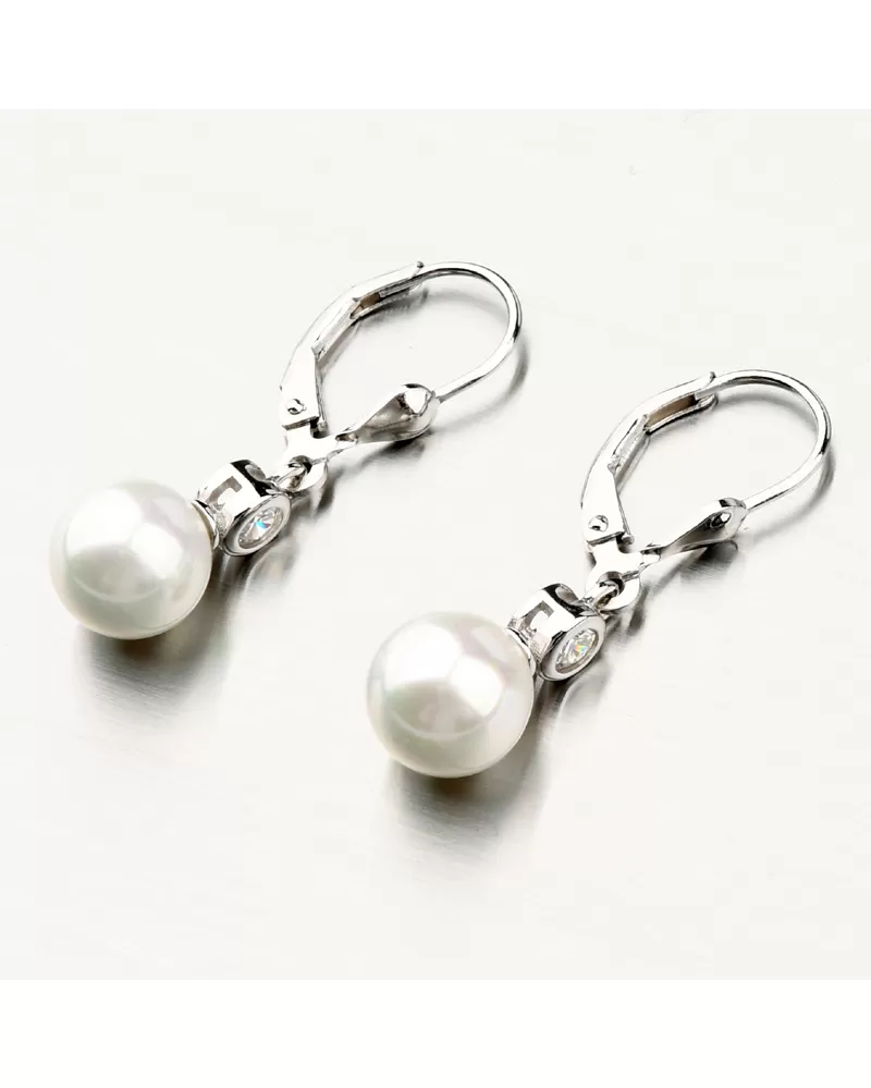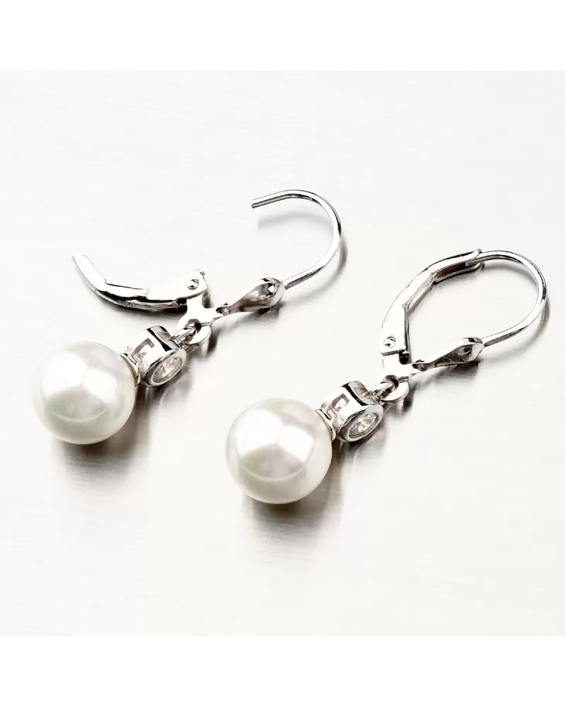 Pôvabné, sexy a zároveň neprehliadnuteľné náušnice. To sú strieborné náušnice s umelou perlou v bielej farbe, ktorá je okrúhleho tvaru. Perla je usadená do spodnej časti pohyblivej časti náušníc a nad ňou je usadený trblietavý zirkón v briliantovom bruse. Tento brus zaisťuje maximálnu brilanciu vybrúsených facet, dokonale odráža svetlo a neuveriteľne žiari z každého uhla pohľadu. Perly sú symbolom krásy a luxusu, ale aj šťastia a úspechu a spokojnosti. Doprajte si tento šperk, ktorý nesmie chýbať vo vašej šperkovnici.