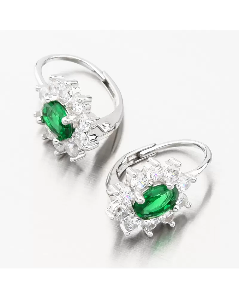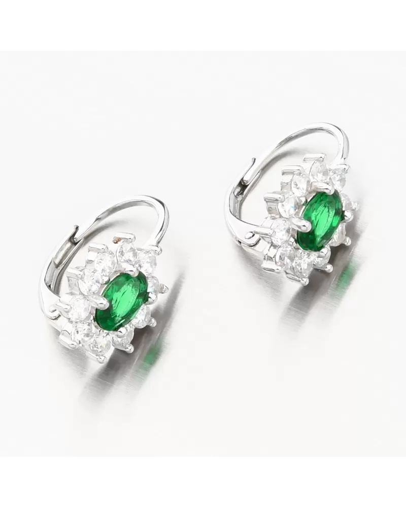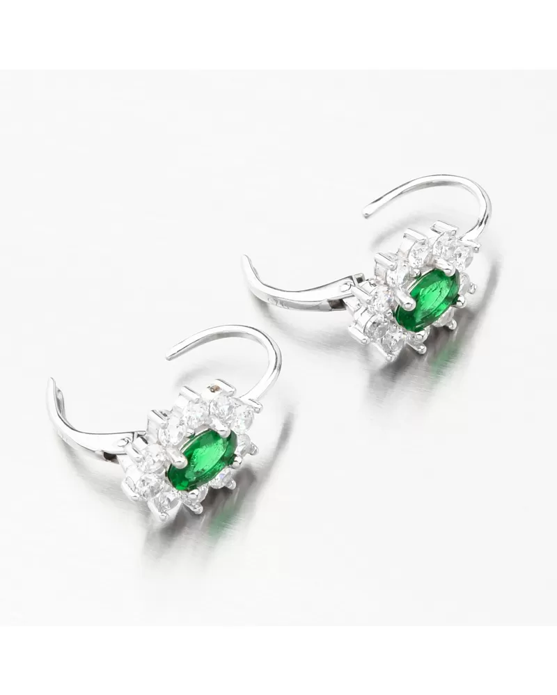 Máte rada výrazné šperky? Tieto náušnice budú tým pravým šperkom do vašej šperkovnice. Sú elegantné, žiarivé a romantické. Ozdoba náuníc má uprostred výrazný syntetický smaragd oválneho tvaru. Smaragd je dominantou týchto náušníc a dokonale zvýrazní Vaše prednosti a doplní celkový vzhľad. Potom sú okolo neho vsadené biele drobné zirkóny po celom obvode. Zirkóny sú briliantového brusu, ktorý zaisťuje maximálnu brilanciu vybrúsených facet, dokonale odráža svetlo a neuveriteľne žiari z každého uhla pohľadu.