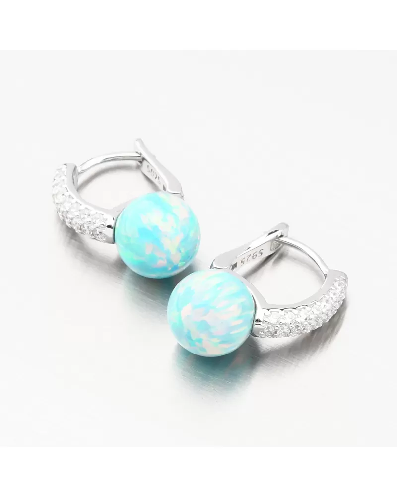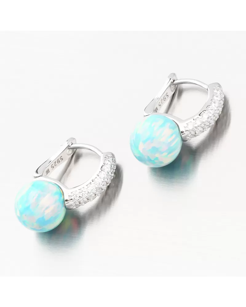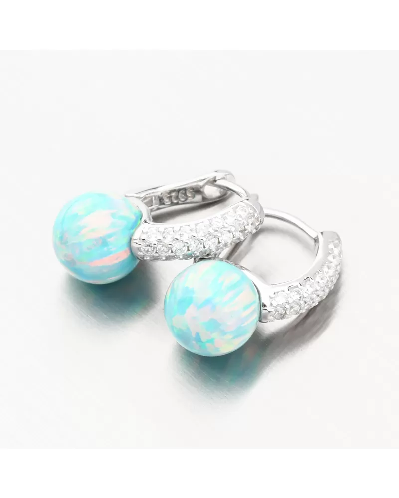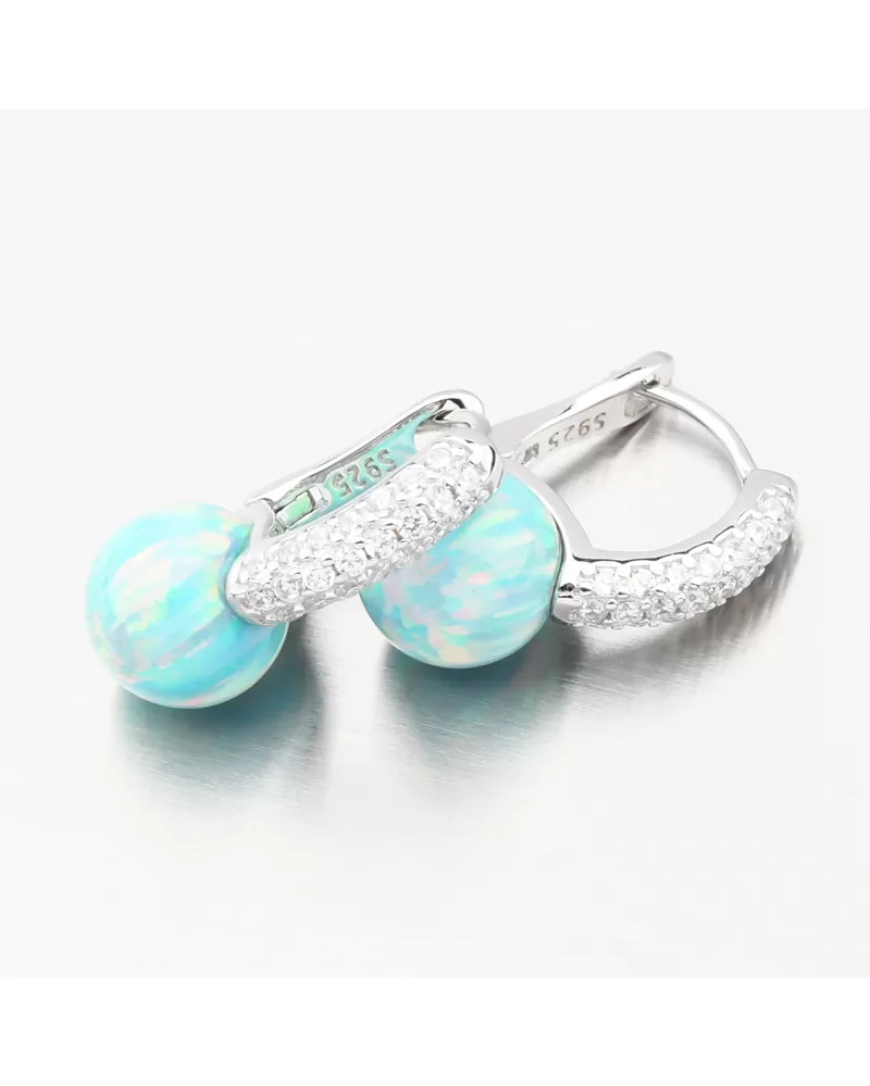 Výrazné strieborné náušnice osadené syntetickým opálom v zelenej farbe, ktorý má nádherné dúhové odlesky. Náušnice sú navyše ozdobené trblietavými zirkónmi na prednej strane zapínania a to rovno v troch radoch. Zirkóny sú brúsené do briliantového brusu, ktorý prepožičiava kameňom brilanciu pravých diamantov. Dizajn náušníc je elegantný a zažiarite s nimi pri všetkých príležitostiach.