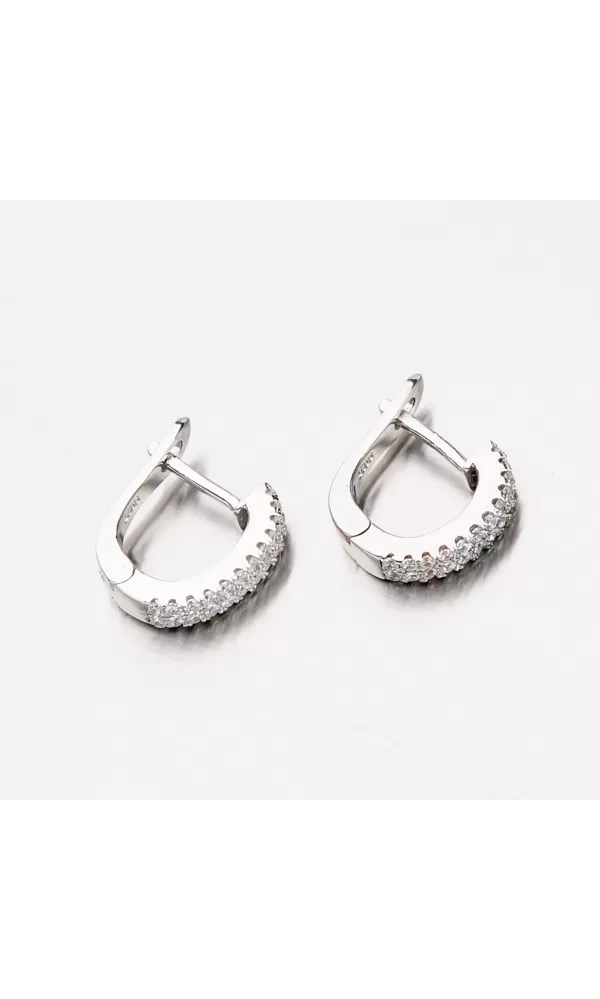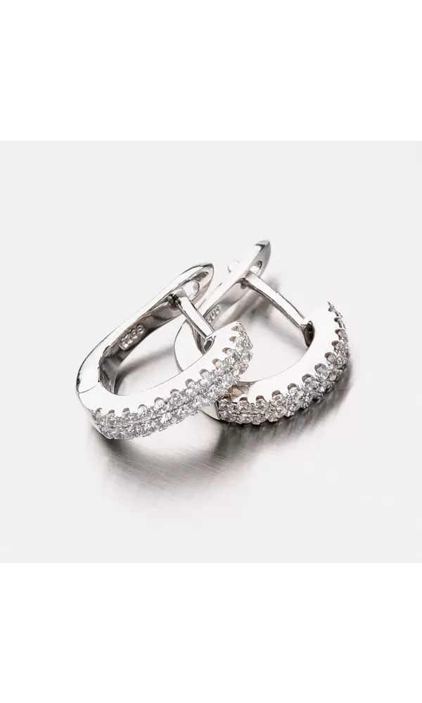 Elegantné náušnice vyrobené zo striebra s rýdzosťou 925/1000 v lesklej povrchovej úprave s povrchom zušľachteným rhodiovaním. Náušnice sú osadené žiarivými zirkónmi v dvoch radoch. Zirkóny sú briliantového brusu a krásne tak odrážajú svetlo a dodávajú nielen šperku elegantný ligot. Náušnice zaručene upútajú pozornosť a vy si ich zamilujete na prvý pohľad. Náušnice budia elegantný dojem a rozhodne vám nemôžu vo vašej šperkovnici chýbať.