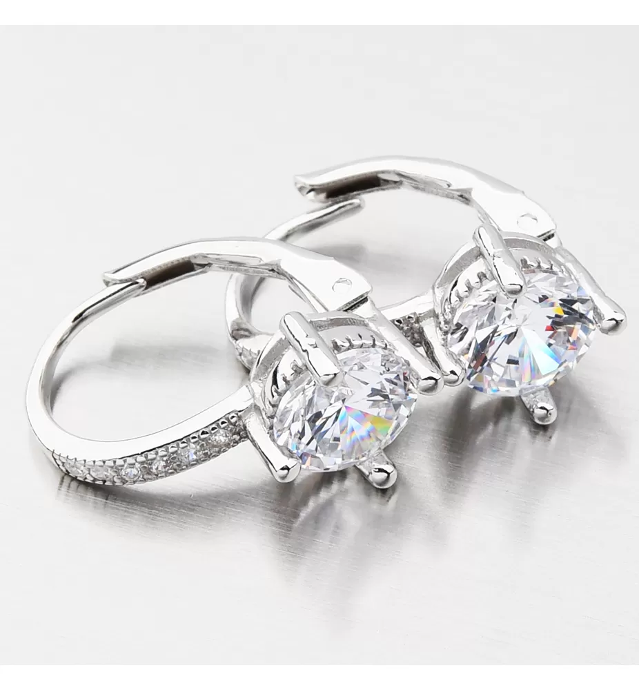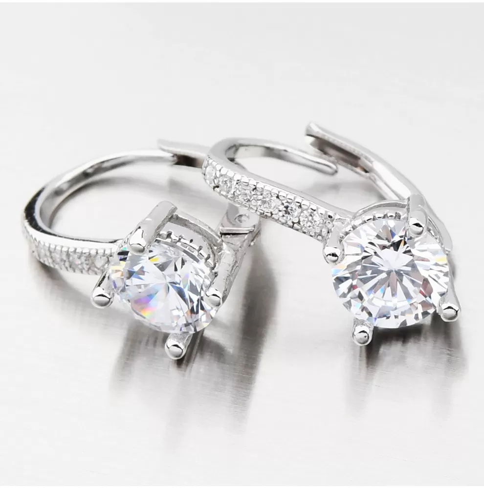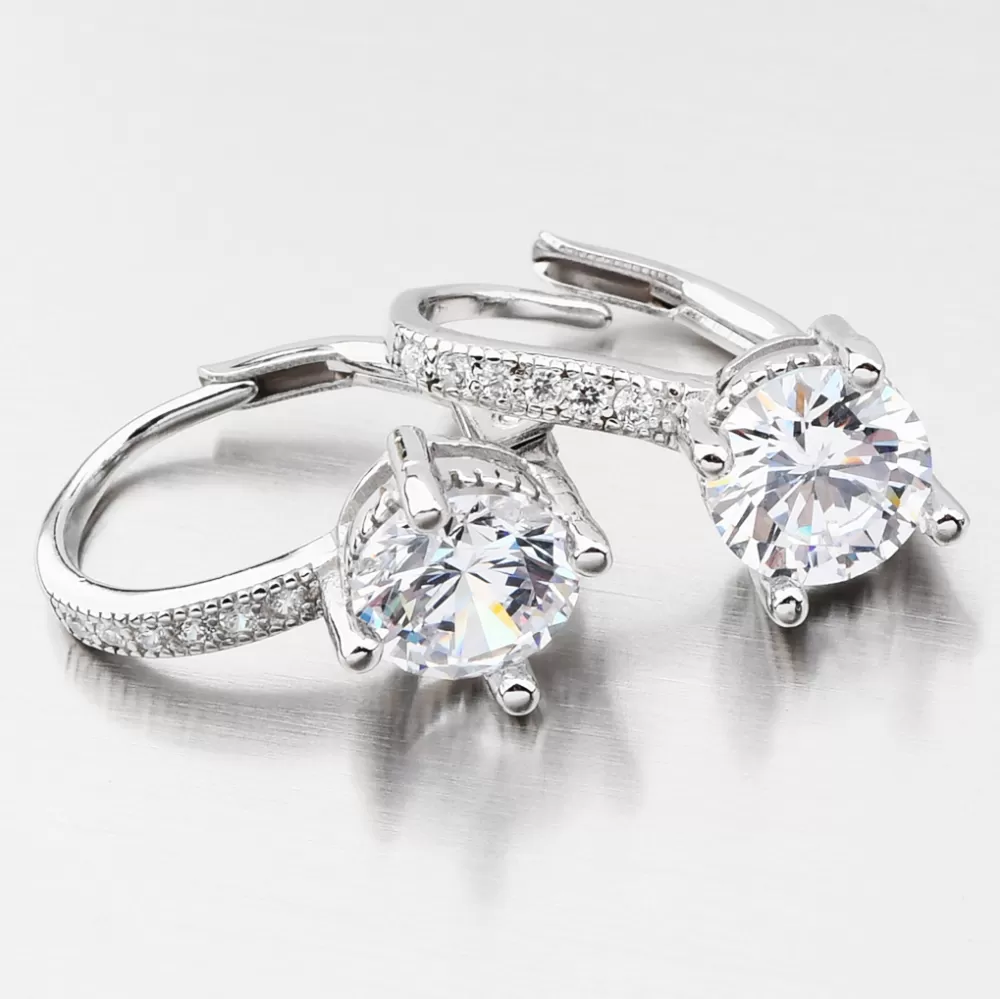 Zářivý doplněk potěší každou ženu. Tento model stříbrných náušnic je zdoben velkým zirkonem v briliantovém brusu. Nad tímto zirkonem jsou vsazeny menší zirkony, které jsou uchyceny v konstrukci náušnice.  Náušnice se zapínají na klapku.