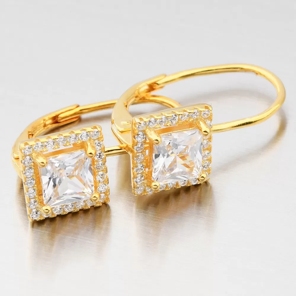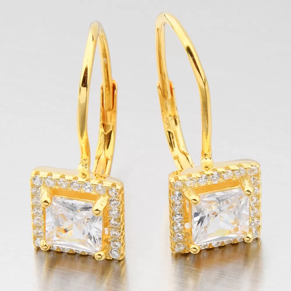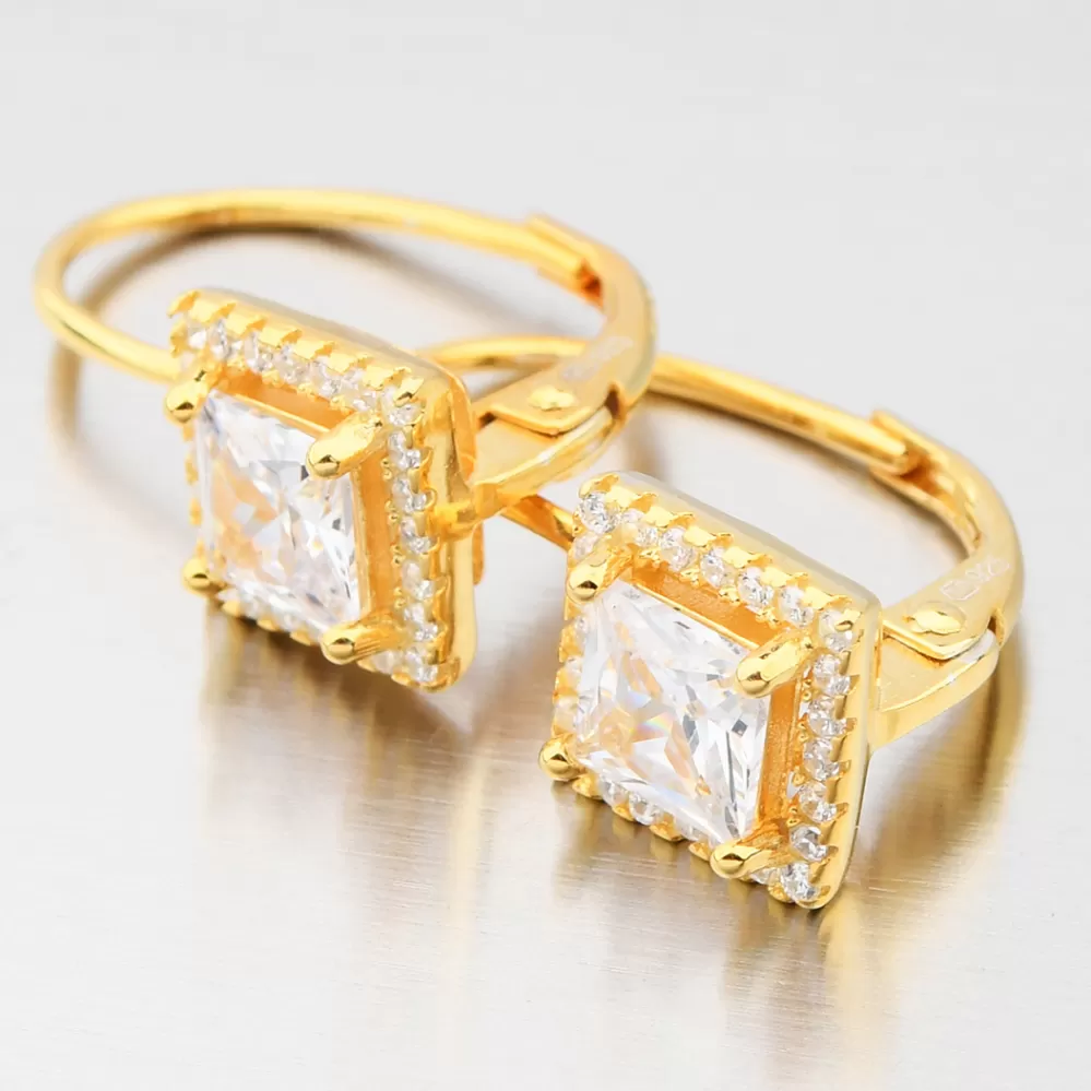 Dámske náušnice strieborné 925 zirkónové visiace pozlátené UCST-122783/G