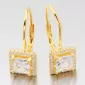 Nepřehlédnutelné náušnice jsou zdobeny hranatým zirkonem a menšími zirkony v briliantovém brusu. Náušnice jsou zlaceny PVD úpravou v barvě žlutého zlata. Předností zlacení technologií PVD je vysoká tvrdost a odolnost proti otěru! Jedná se o silnou vrstvu, která proniká do původního materiálu. Zlacení technologií PVD se dá srovnat s přibližně 12 mikrony galvanického zlacení, což je vysoká hodnota, která při běžném nošení vydrží až 12 let. Náušnice se zapínají na klapku.