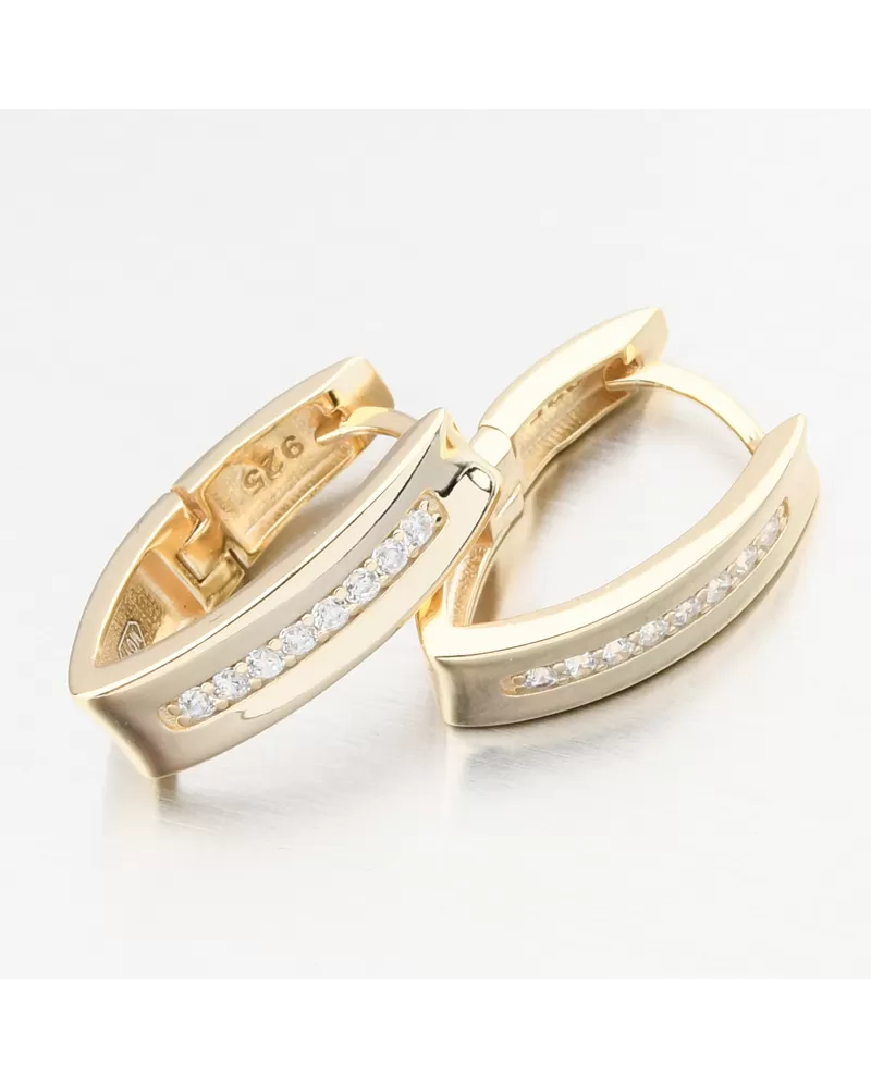 Náušnice sú vyrobené zo striebra s čistotou 925/1000 v lesklom povrchu. Náušnice sú pozlátené technikou PVD v žltom zlate. Výhodou pozlátenia PVD technológií je vysoká odolnosť proti tvrdosti a oderu! Je to hrubá vrstva, ktorá preniká do pôvodného materiálu. Technológie PVD sa dajú porovnávať s približne 12 mikrónmi galvanického zlatovania, čo je vysoká hodnota, ktorá trvá až 12 rokov pri normálnom opotrebení.