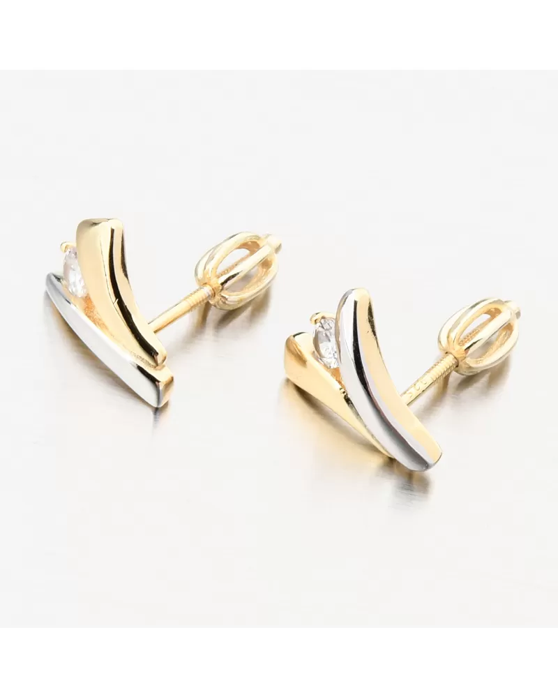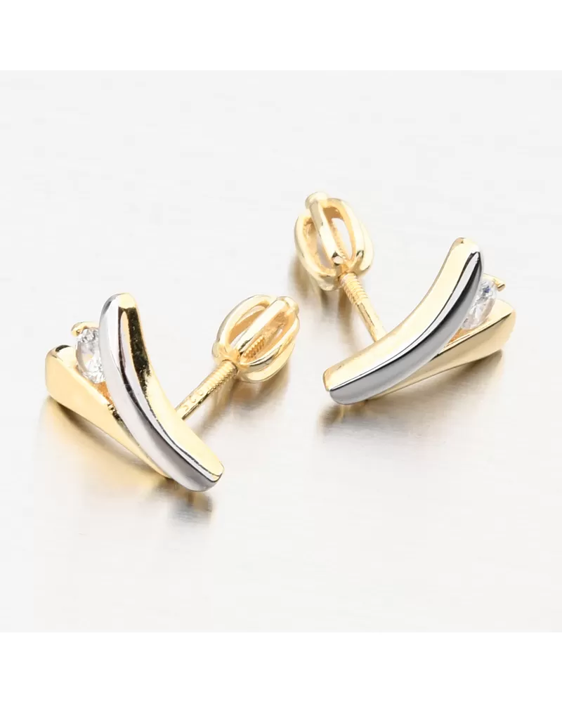 Jemné a elegantné strieborné náušnice, ktoré však ohromujú ich dekoráciu brilantnými zirkónmi. Výzdoba náušníc je v tvare V V, kde je jedna strana pozlátená a druhá v rezu. Horná časť je zdobená výrazným brilantným brúsnym zirkónom, ktorý poskytuje maximálnu brilanciu leštenej aspektu, dokonale odráža svetlo a neuveriteľne svieti zo všetkých pohľadov.