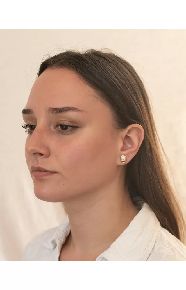 Jemné a elegantné strieborné náušnice, ktoré však ohromujú ich dekoráciu brilantnými zirkónmi. Ozdoba náušníc je oválny tvar, kde veľká časť je zdobená malými zirkónmi. Všetky zirkóny sú brilantným strihom, ktorý poskytuje maximálnu brilanciu leštenej fazety, dokonale odráža svetlo a neuveriteľne svieti zo všetkých pohľadov.