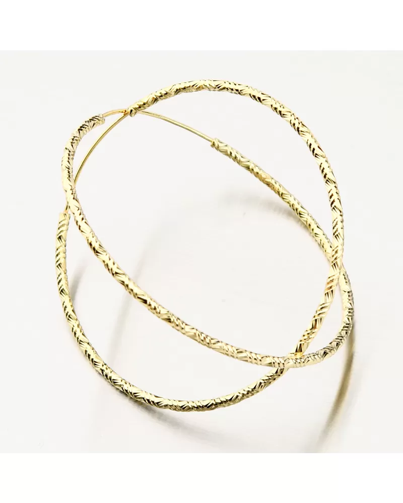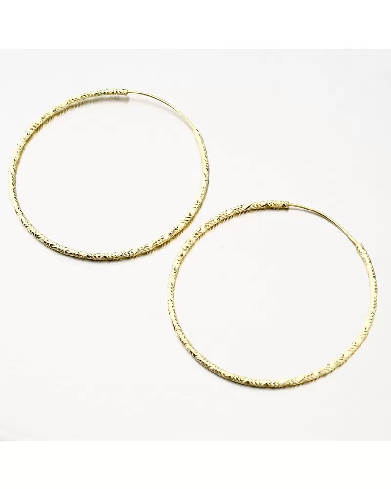 Veľmi obľúbený typ náušníc - kruhy, ktorými zaručene nič nepokazíte, ba naopak! Kruhy sú priam oslňujúce a za to vďačia gravírovaním. Gravírovanie je prevedené diamantovým rycím hrotom, ktorý zaisťuje najvyšší možný lesk gravírovaných facet. Tieto nadčasové náušnice musíte mať. Sú vhodné na každodenné nosenie. Kruhy sú pozlátené do farby žltého zlata.