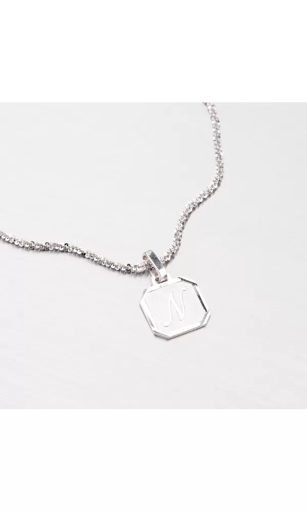 Tento krásny prívesok s písmenkom 'N' je vyrobený zo striebra o rýdzosti 925/1000 s lesklým povrchom a je upravený diamantovým nástrojom, ktorý vytvára facety zaručujúce maximálny lesk šperkov. Pre vysokú odolnosť prívesku je jeho povrch zušľachtený rhodiovaním. Ródium je ušľachtilý drahý kov zo skupiny platinových kovov. Rhodiovaním strieborných šperkov galvanickým nanášaním tohto drahého kovu sa stáva povrch šperku tvrdší, stálejší a odolnejší voči vonkajším vplyvom ako je mechanický oter, poškriabanie, nabiehanie striebra, ľudský pot, kozmetické prípravky a ďalšie. Ródium je antialergické.