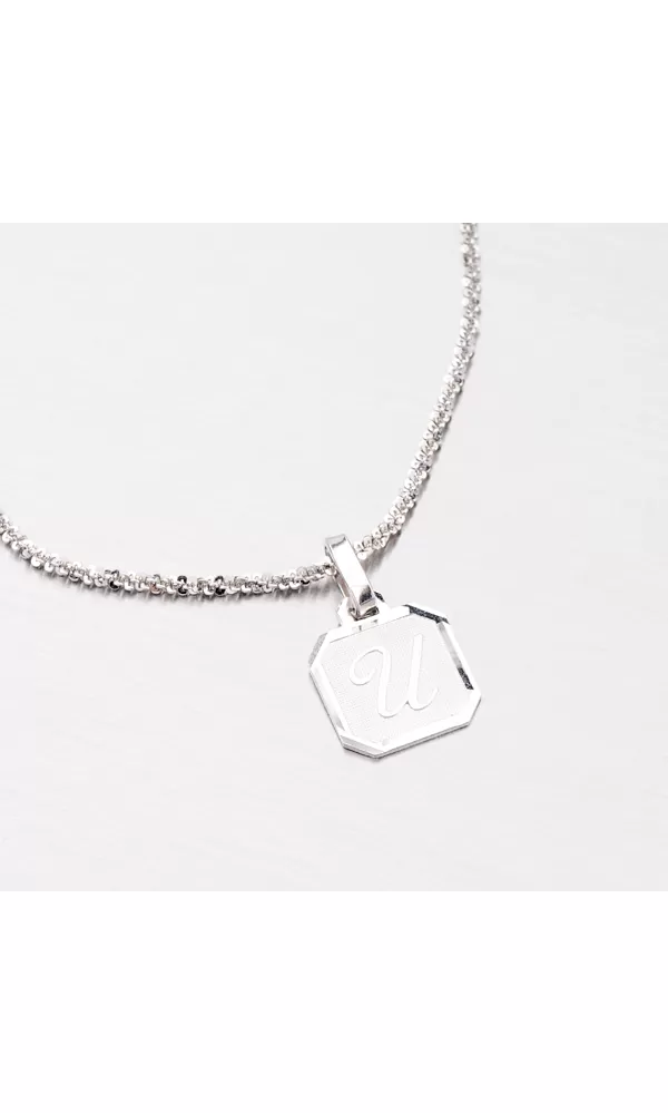 Tento krásny prívesok s písmenkom 'U' je vyrobený zo striebra o rýdzosti 925/1000 s lesklým povrchom a je upravený diamantovým nástrojom, ktorý vytvára facety zaručujúce maximálny lesk šperkov. Pre vysokú odolnosť prívesku je jeho povrch zušľachtený rhodiovaním. Ródium je ušľachtilý drahý kov zo skupiny platinových kovov. Rhodiovaním strieborných šperkov galvanickým nanášaním tohto drahého kovu sa stáva povrch šperku tvrdší, stálejší a odolnejší voči vonkajším vplyvom ako je mechanický oter, poškriabanie, nabiehanie striebra, ľudský pot, kozmetické prípravky a ďalšie. Ródium je antialergické.