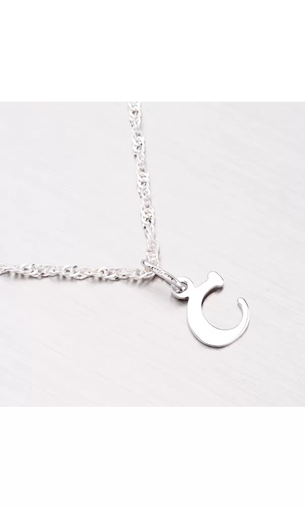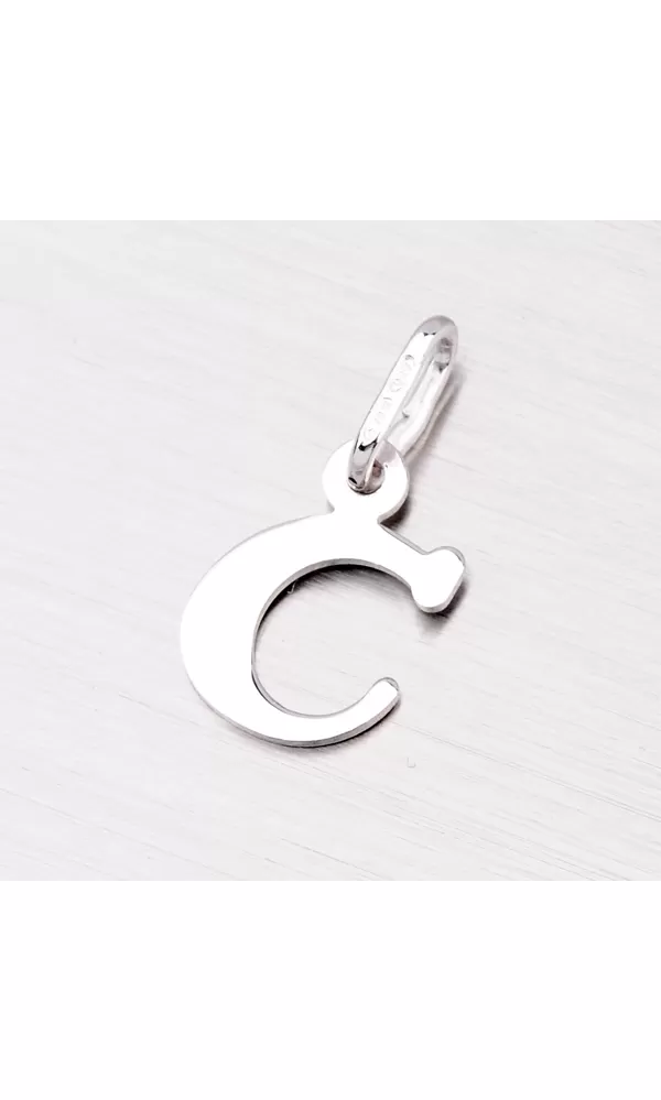Prívesok v tvare písmenka C je vyrobený z rhodiovaného striebra rýdzosti 925/1000. Prívesok je vyrobený v lesklej povrchovej úprave. K prívesku je vhodné použiť retiazku s priemerom 2,50 mm.
