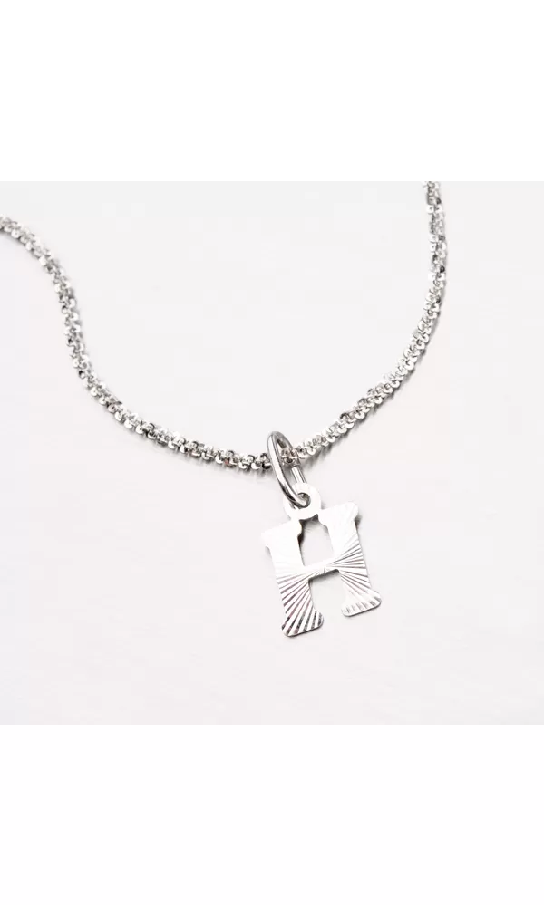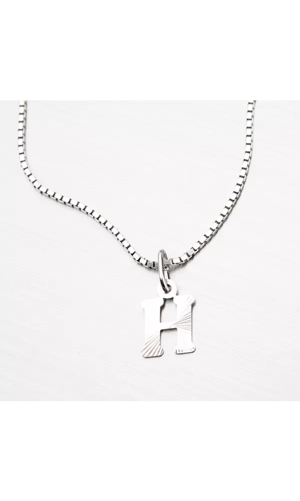 Prívesok v tvare písmenka H je vyrobený z rhodiovaného striebra rýdzosti 925/1000. Ródium je ušľachtilý drahý kov zo skupiny platinových kovov. Rhodiovaním strieborných šperkov galvanickým nanášaním tohto drahého platinového kovu sa stáva povrch šperku tvrdší, stálejší a odolnejší voči vonkajším vplyvom ako je mechanický oter, poškriabanie, nabiehanie striebra, ľudský pot, kozmetické prípravky a ďalšie. Ródium je antialergické. Prívesok je vyrobený v lesklej povrchovej úprave s facetami, ktoré sú robené za pomoci diamantového nástroja a dodávajú šperku maximálny lesk a brilanciu zo všetkých uhlov. K prívesku je vhodné použiť retiazku s priemerom 2,50 mm.
