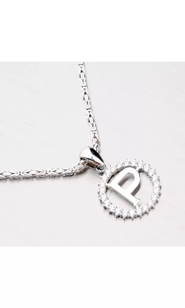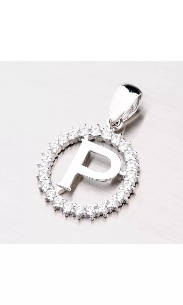 Žiarivý prívesok v tvare písmenka P je vyrobený z rhodiovaného striebra rýdzosti 925/1000. Prívesok je vyrobený v lesklej povrchovej úprave a je osadený trblietavými zirkónmi.