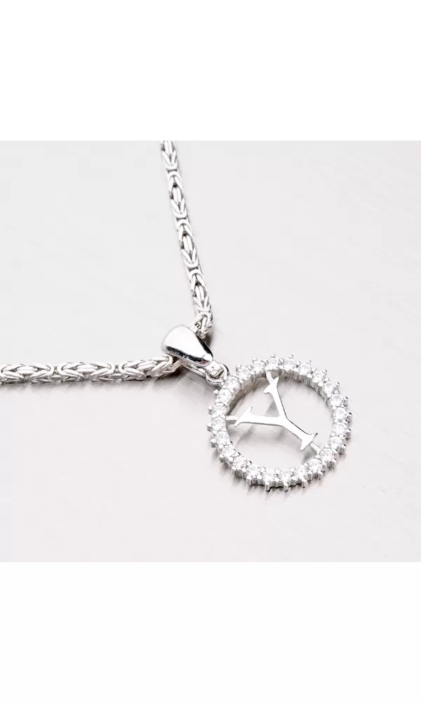Prívesok v tvare písmenka Y je vyrobený z rhodiovaného striebra rýdzosti 925/1000. Prívesok je vyrobený v lesklej povrchovej úprave a je osadený trblietavými zirkónmi. K prívesku je vhodné použiť retiazku s priemerom 2,75 mm.