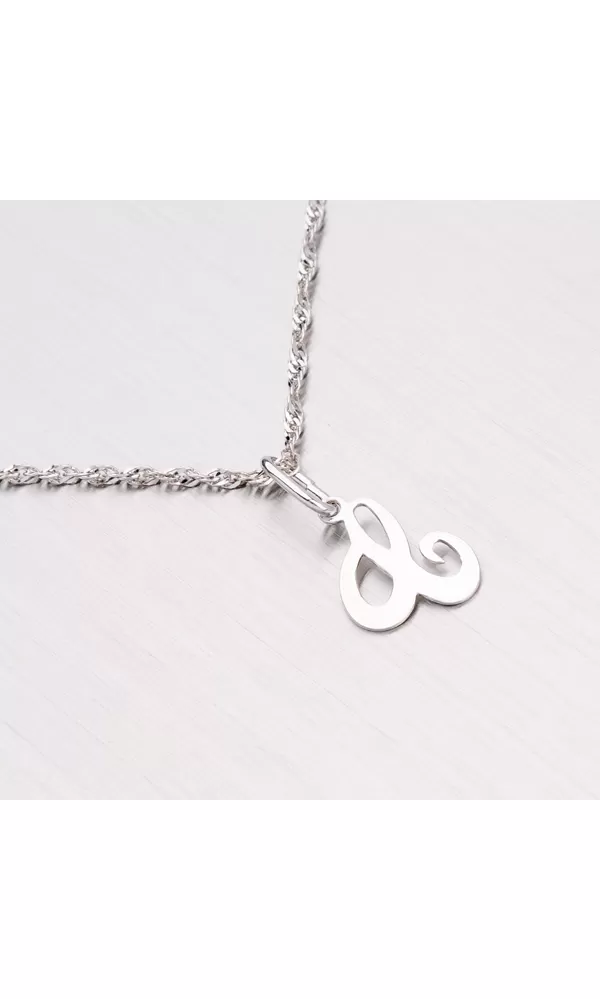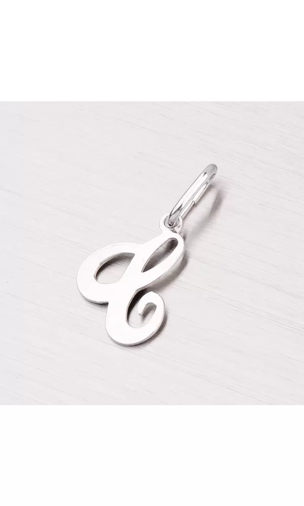 Jemný prívesok v tvare písmenka C je vyrobený z rhodiovaného striebra rýdzosti 925/1000. Prívesok je vyrobený v lesklej povrchovej úprave. K prívesku je vhodné použiť retiazku s priemerom 2,50 mm.