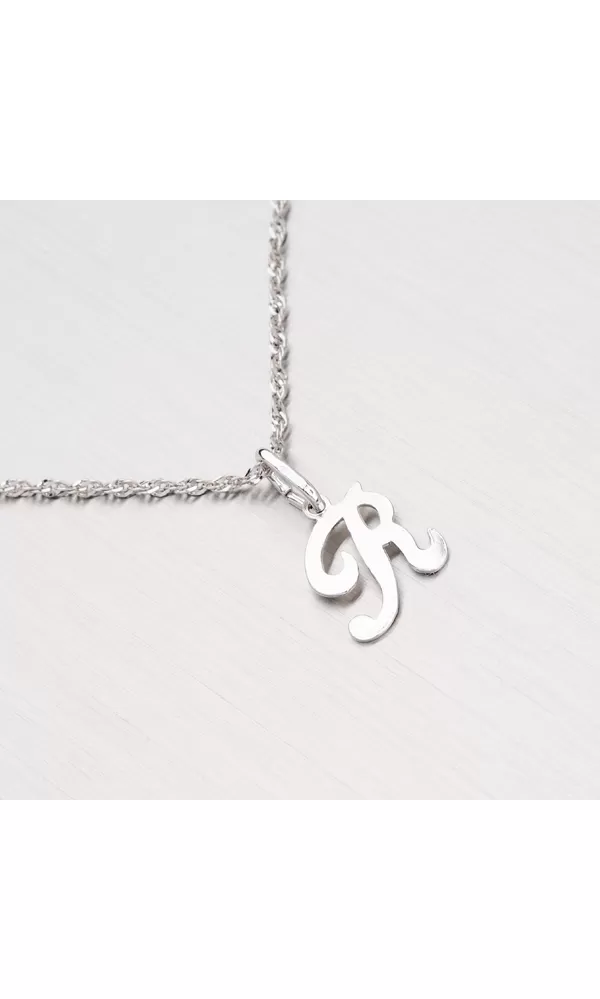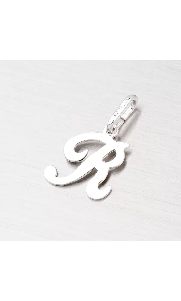 Jemný prívesok v tvare písmenka R je vyrobený z rhodiovaného striebra rýdzosti 925/1000. Prívesok je vyrobený v lesklej povrchovej úprave. K prívesku je vhodné použiť retiazku s priemerom 2,50 mm.