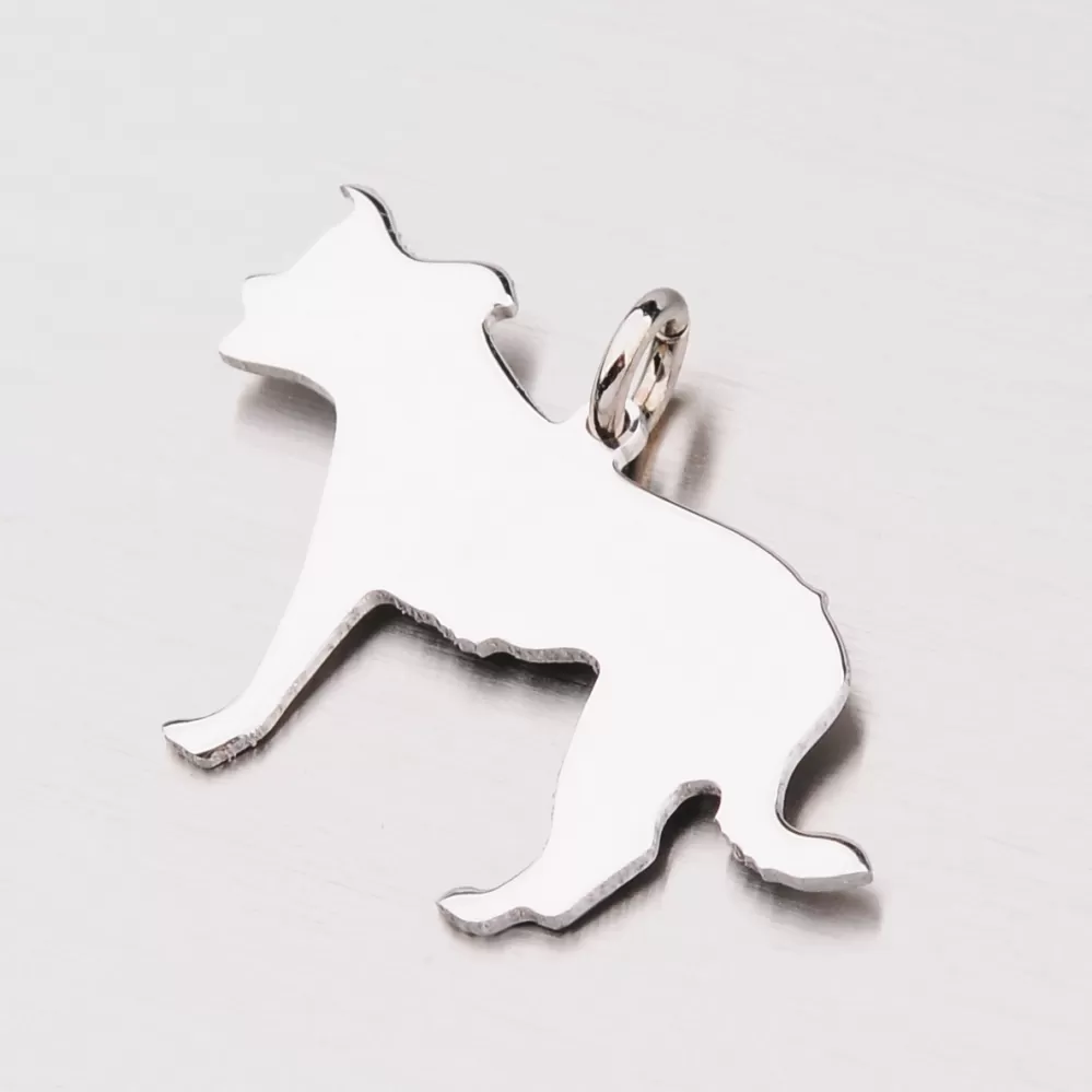 Prívesok v tvare psíka poteší určite každého milovníka psov. Môžete príveskom niekoho obdarovať alebo si urobiť radosť sebe a nosiť svojho miláčika stále so sebou. Prívesok je hladký a lesklý a to sa ponúka si ho nechať ozdobiť rytinou , ktorú môžete nechať vyryť na zadnú alebo prednú stranu prívesku. Vyryť môžete nechať Vami vybraný text ako je napr. meno alebo písmeno. Opis rytiny prosím uveďte v kolónke špeciálne požiadavky. Prívesok je vyrobený zo striebra o rýdzosti 925/1000 v lesklej povrchovej úprave a povrch prívesku je zušľachtený rhodiovaním.