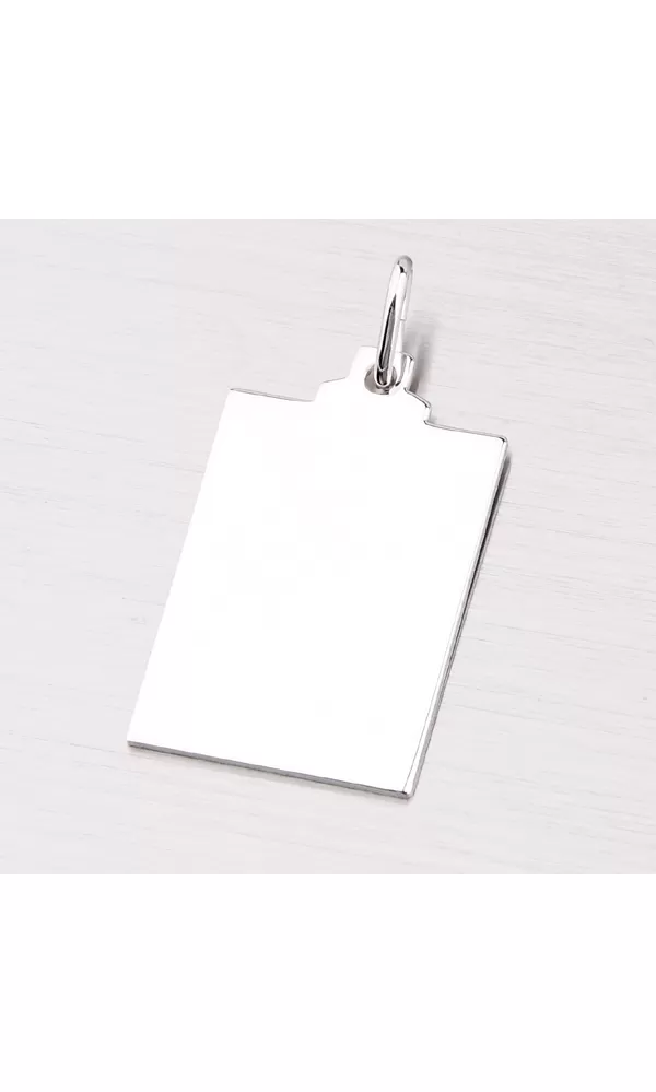 Rhodiovaný prívesok - doštička obdĺžnikového tvaru je vyrobený zo striebra rýdzosti 925/1000. Predná strana prívesku je v lesklej povrchovej úprave a zadná strana v matnej povrchovej úprave.