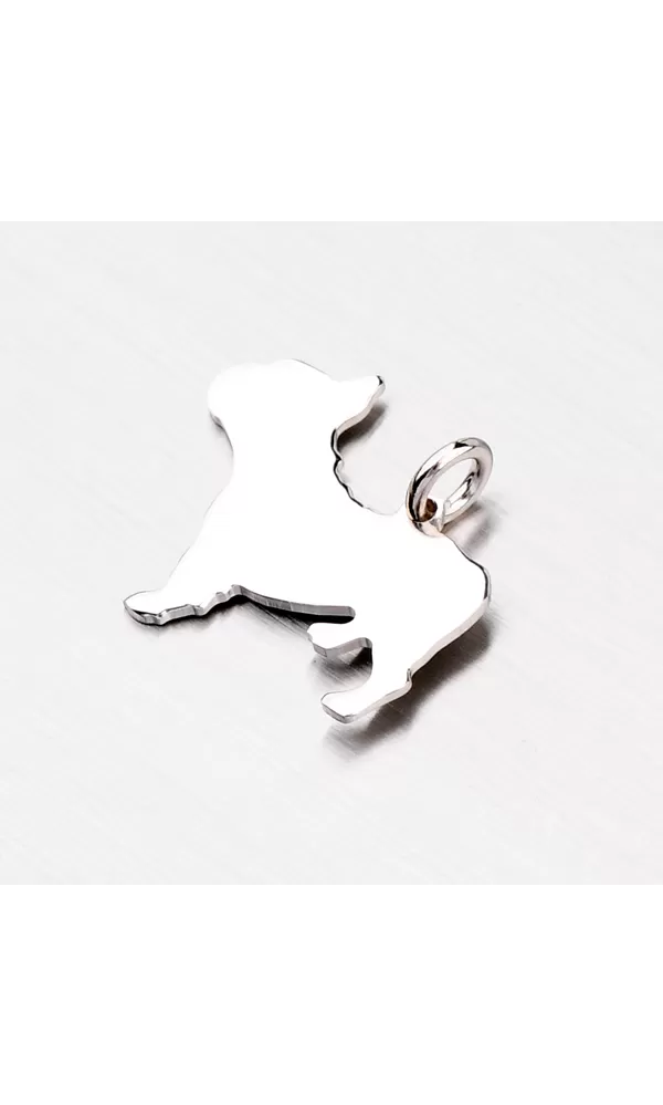 Skvelý tip na darček! Prívesok v tvare psíka určite poteší každého milovníka psov. Môžete príveskom niekoho obdarovať alebo si urobiť radosť sebe a nosiť svojho miláčika stále so sebou. Prívesok je hladký a lesklý a to sa ponúka si ho nechať ozdobiť rytinou, ktorú môžete nechať vyryť na zadnú alebo prednú stranu prívesku. Vyryť môžete nechať Vami vybraný text ako je napr. meno alebo písmeno. Opis rytiny prosím uveďte v kolónke špeciálne požiadavky.