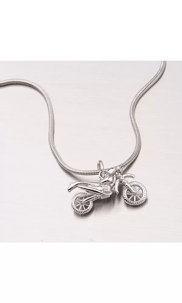Nápaditý přívěsek ve tvaru motorky překvapí každého, hlavně milovníky motorismu. Tímto přívěskem můžete zábavně obdarovat své blízké nebo sebe. Motorka je precizně zpracovaná a s vhodným řetízkem bude vypadat skvěle.