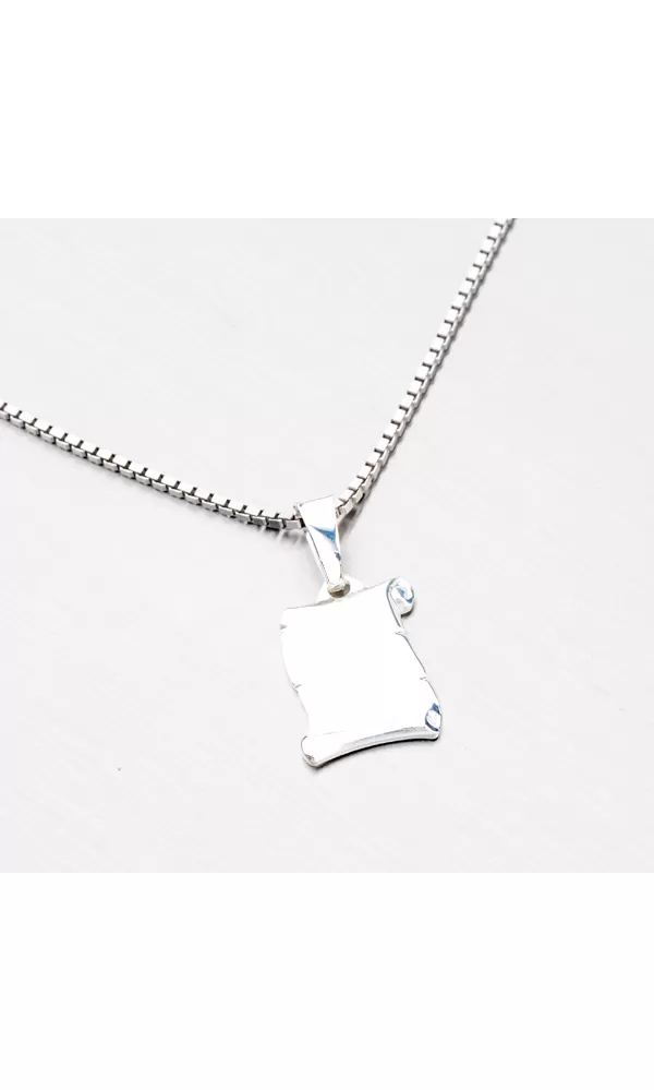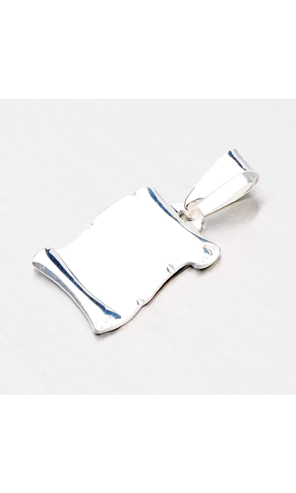 Strieborná doštička v tvare pergamenu je ako stvorená pre rytinu. Rytínu si môžete nechať nechať vyryť na zadnú alebo prednú stranu prívesku. Vyryť môžete nechať Vami vybraný text ako je napr. meno alebo písmeno. Opis rytiny prosím uveďte v kolónke špeciálne požiadavky.