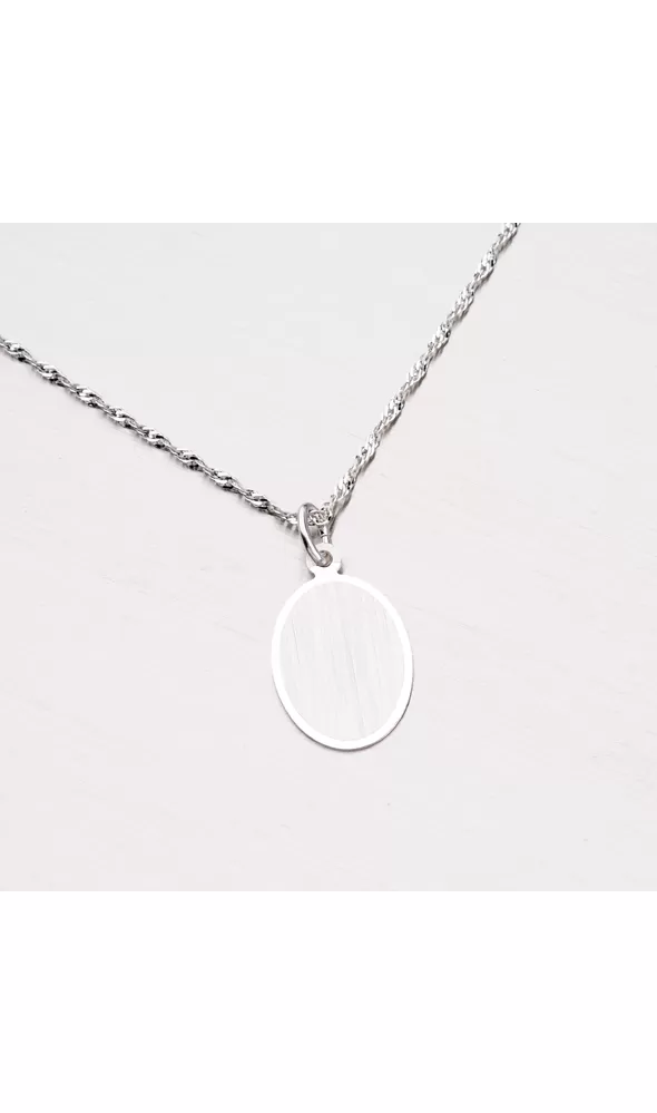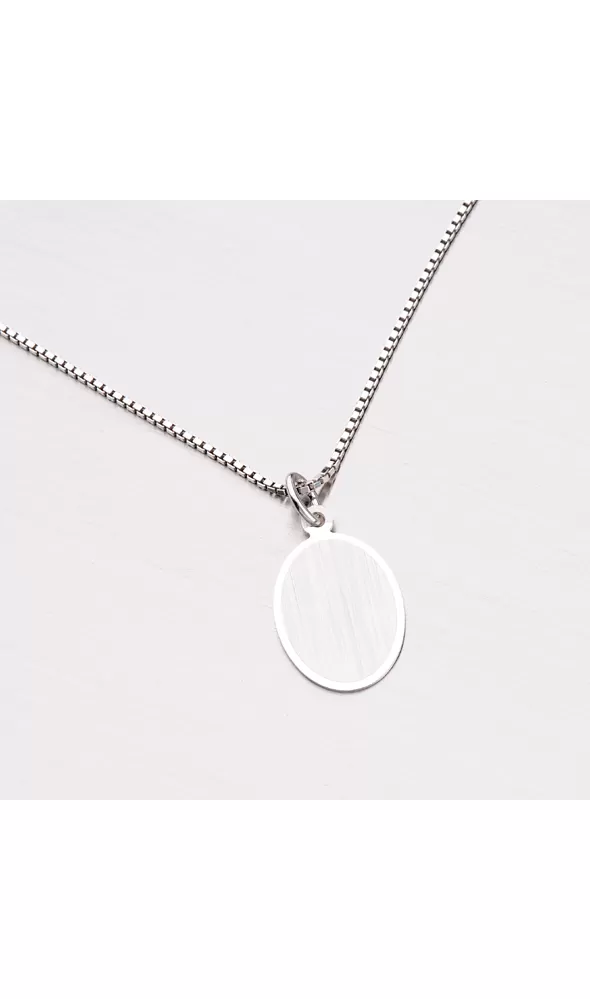 Moderný oválny prívesok bude ideálnym príveskom v kombinácii s rytinou, ktorú môžete dať, ako na prednú, tak aj na zadnú stranu prívesku. Vyryť môžete nechať Vami vybraný text ako je napr. meno alebo písmeno. Opis rytiny prosím uveďte v kolónke špeciálne požiadavky. Prívesok je v brúsenom mate a má lesklé bočné facety, ktoré sú zhotovené diamantovým nástrojom, ktorý zaisťuje maximálny lesk.