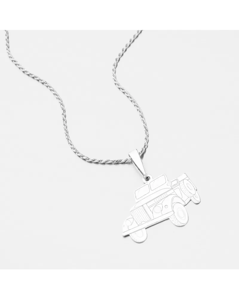 Milujete veľké stroje? Potom Vás tento strieborný prívesok zaručene zaujme. Je totiž v tvare Jeepu s detailným spracovaním, kde za pomoci rýh a zamatového matu sa dokonale dokreslí tvar auta.