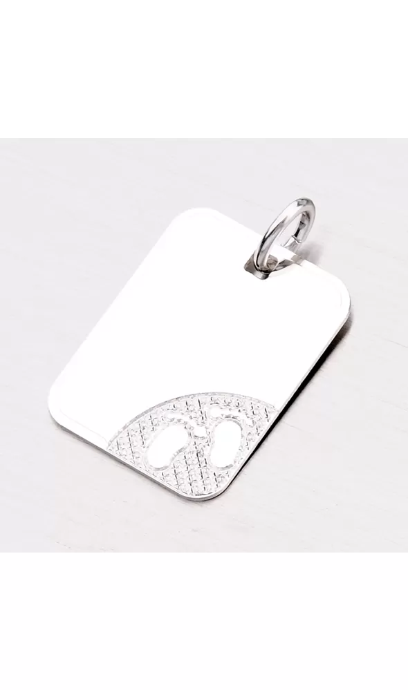 Obľúbený prívesok v tvare doštičky, kde sú vygravírované malé nožičky. Tento prívesok bude ideálnym príveskom na narodenie bábätka. Najlepšie v kombinácii s rytinou, ktorú môžete dať, ako na prednú, tak aj na zadnú stranu prívesku. Vyryť môžete nechať Vami vybraný text ako je napr. meno alebo dátum narodenia bábätka. Opis rytiny prosím uveďte v kolónke špeciálne požiadavky. Doštička je v lesku a má lesklé bočné facety, ktoré sú zhotovené diamantovým nástrojom, ktorý zaisťuje maximálny lesk.
