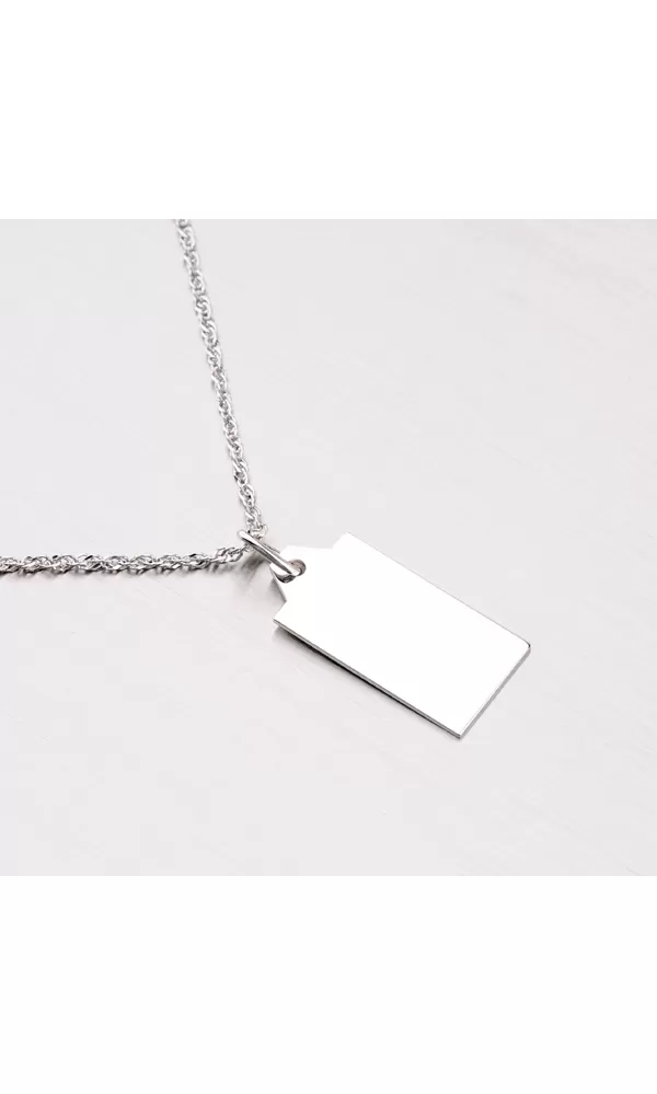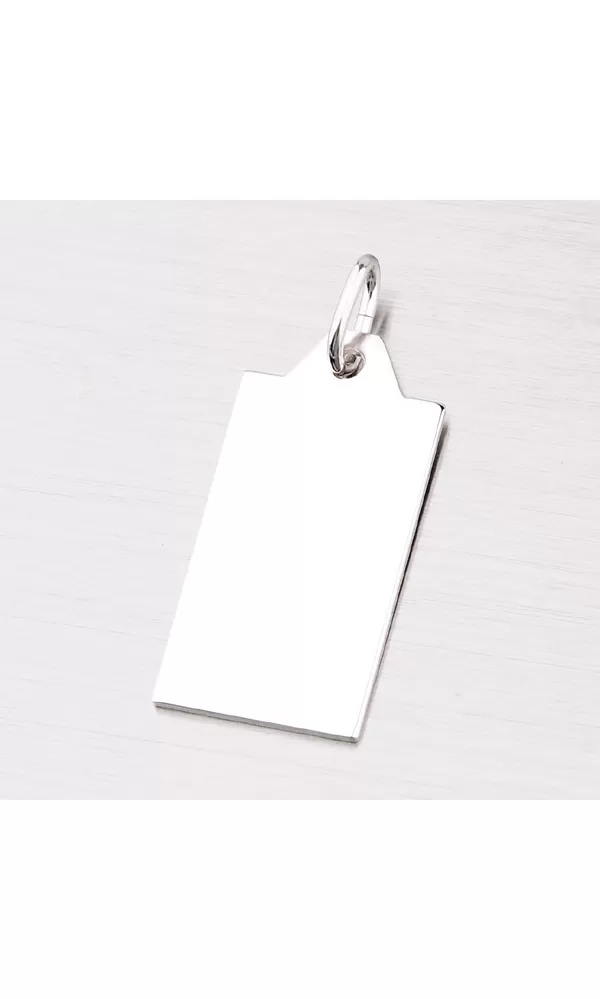 Rhodiovaný prívesok - doštička vyrobený zo striebra rýdzosti 925/1000. Predná strana prívesku je v lesklej povrchovej úprave a zadná strana v matnej povrchovej úprave.